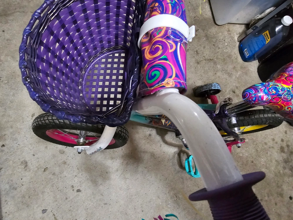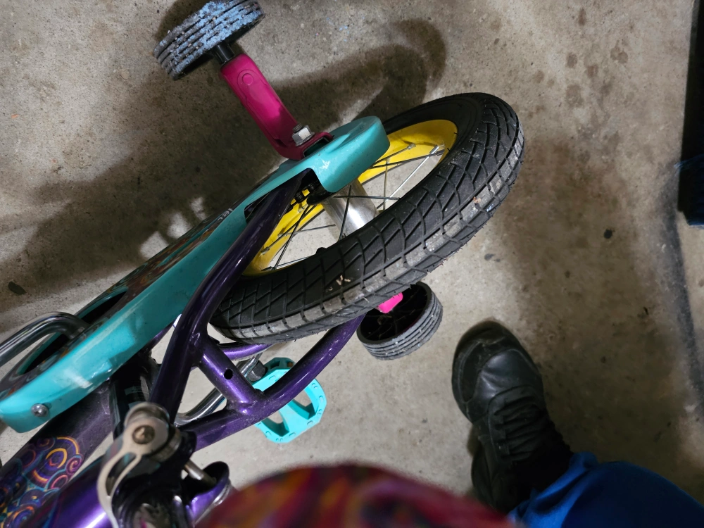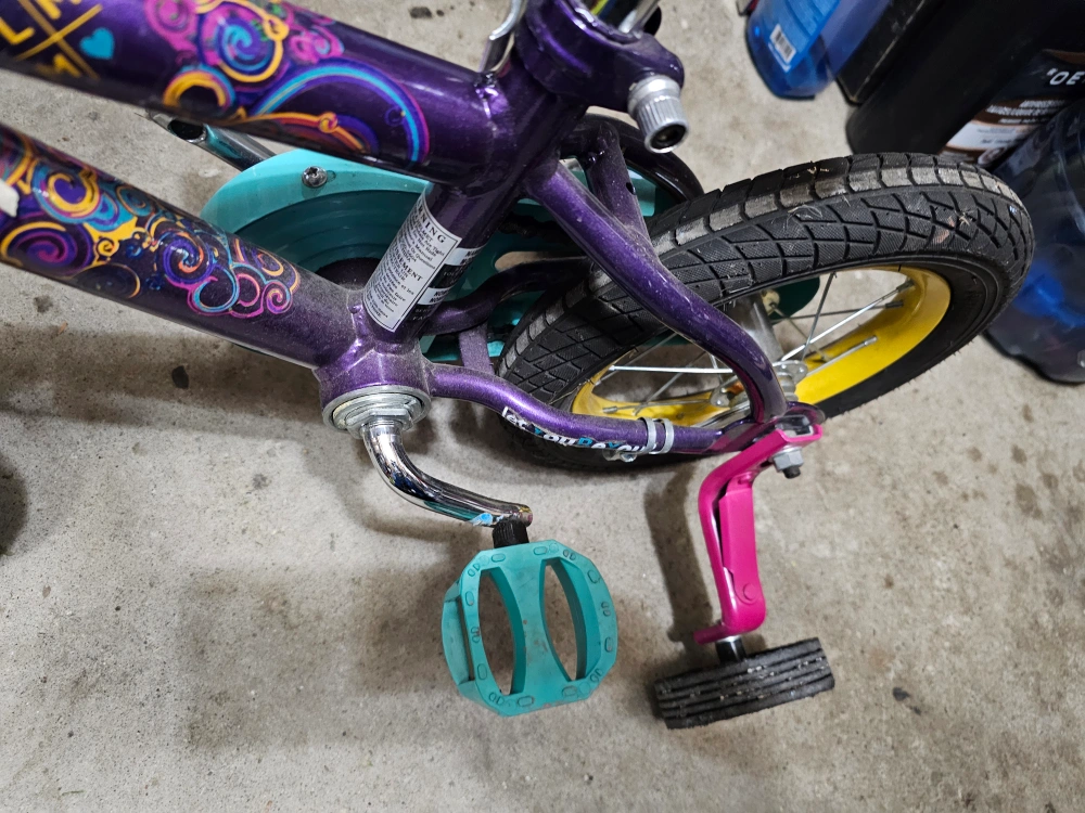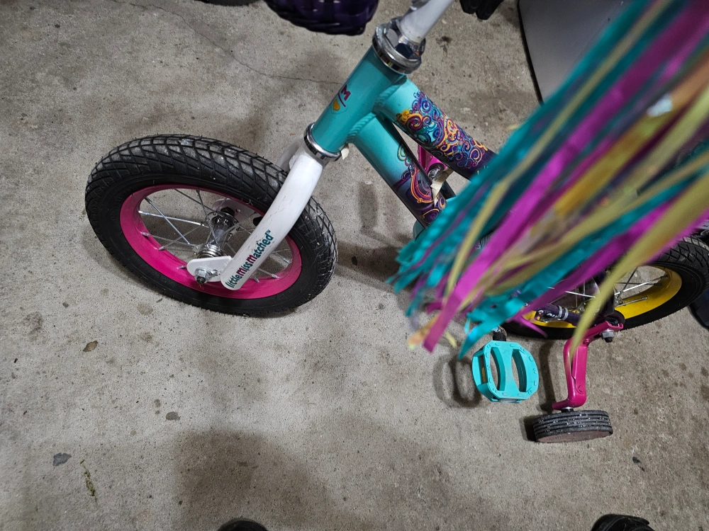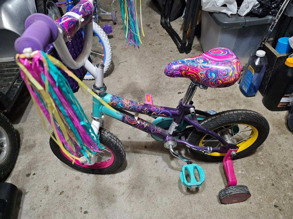Selling a Little Blippi kids' bike. It features a colourful design with purple, turquoise, and pink accents. Perfect for a young child learning to ride! barely even riden maybe a handful of times