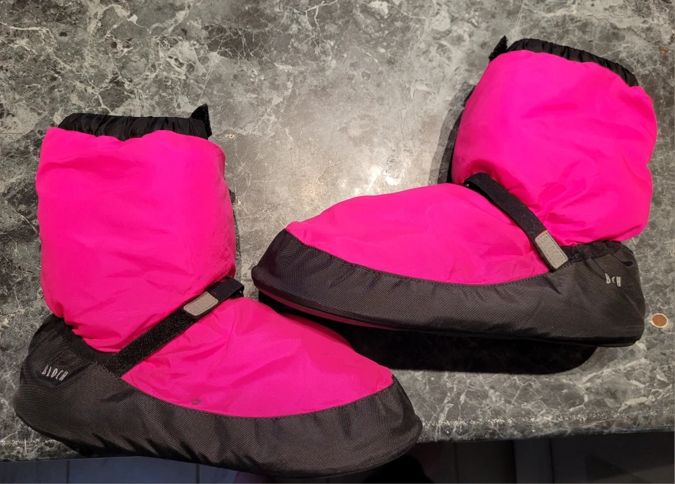 23Bloch dance warm up Booties size L. In very good used condition. A sharpie heart is on the side of each bootie so my dancer knew which Booties were hers. Asking $40 Cat friendly home. Pick up Columbia Forest Waterloo or Petersburg. Cross posted. If ad is up, Booties are still available.