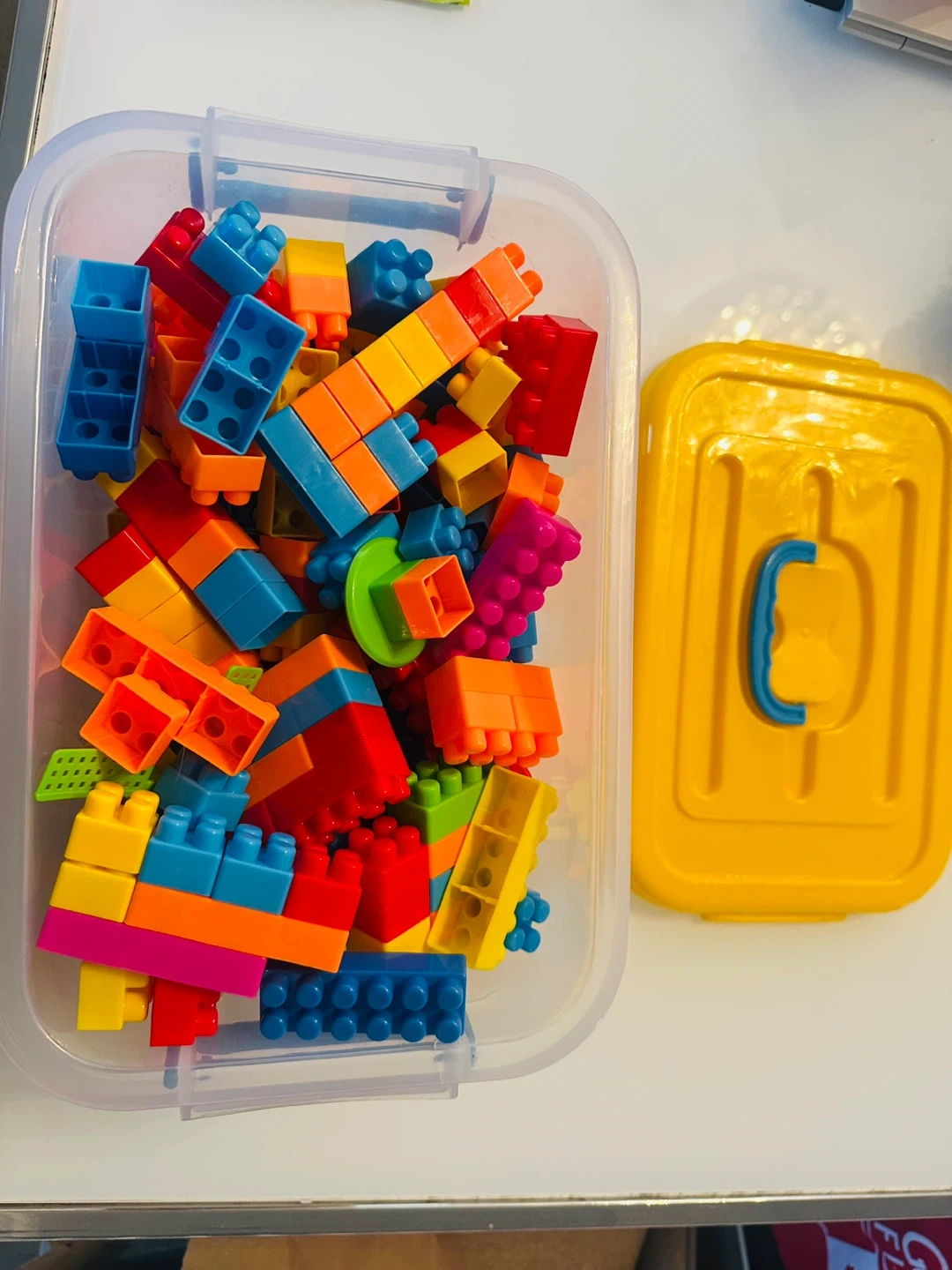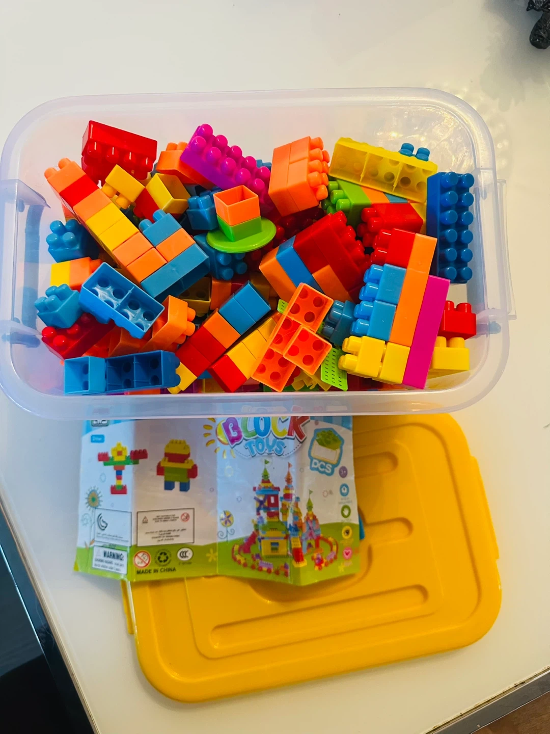 60Selling a set of colourful building blocks! These are great for kids to explore their creativity and have fun building different structures. Comes in a handy storage container with a yellow lid, making cleanup a breeze!