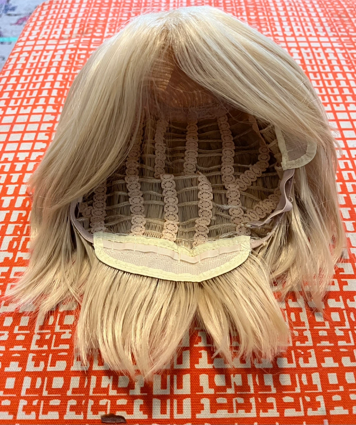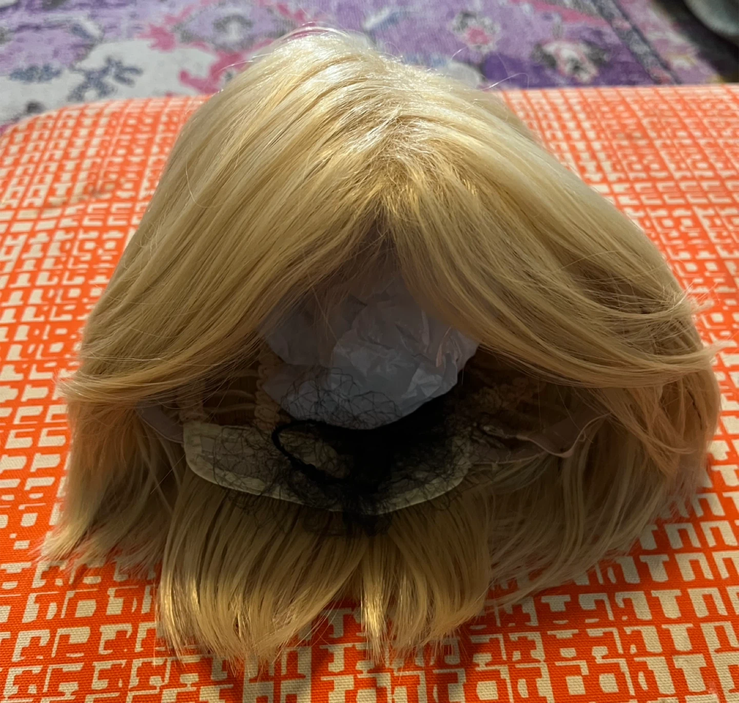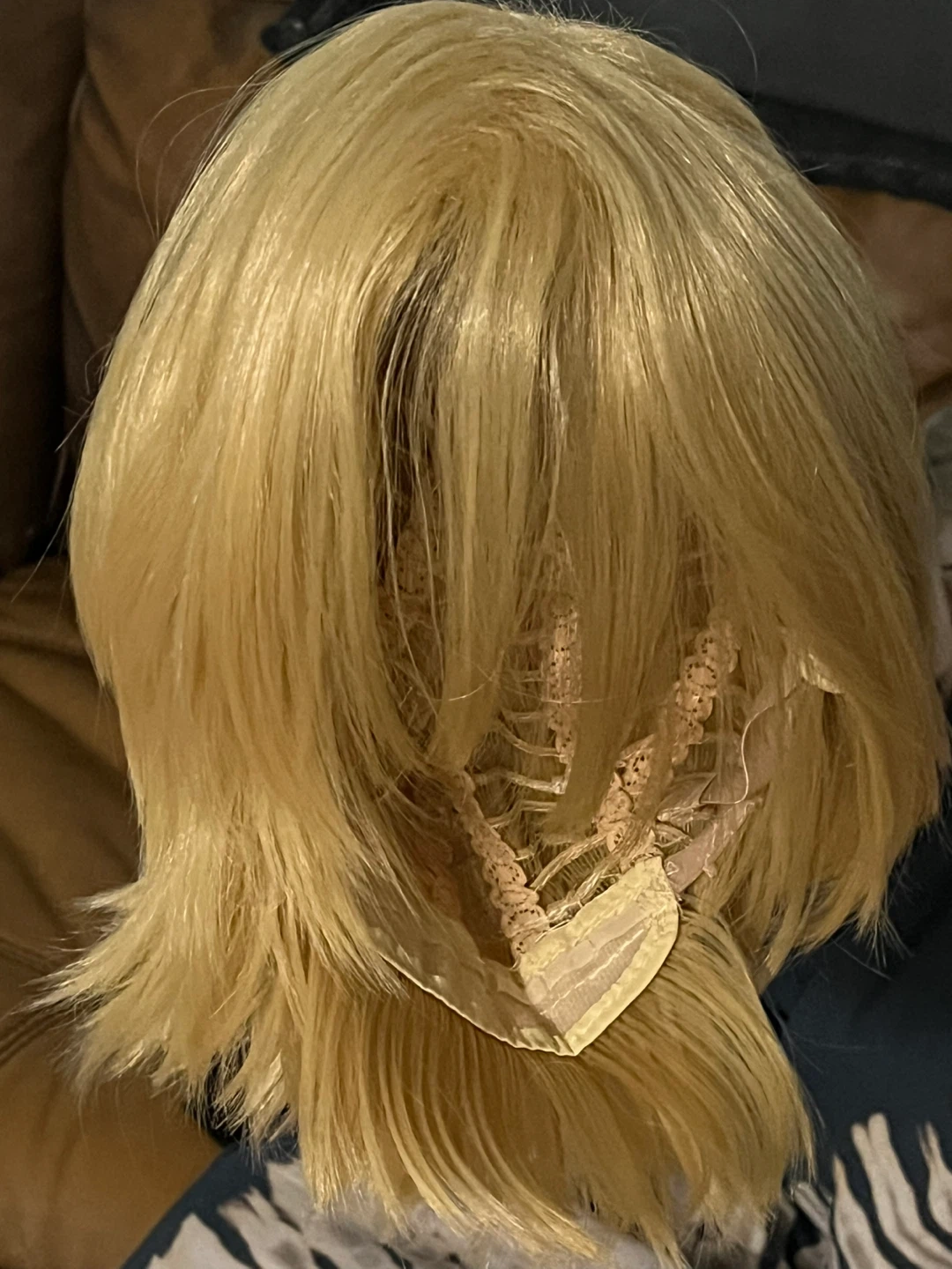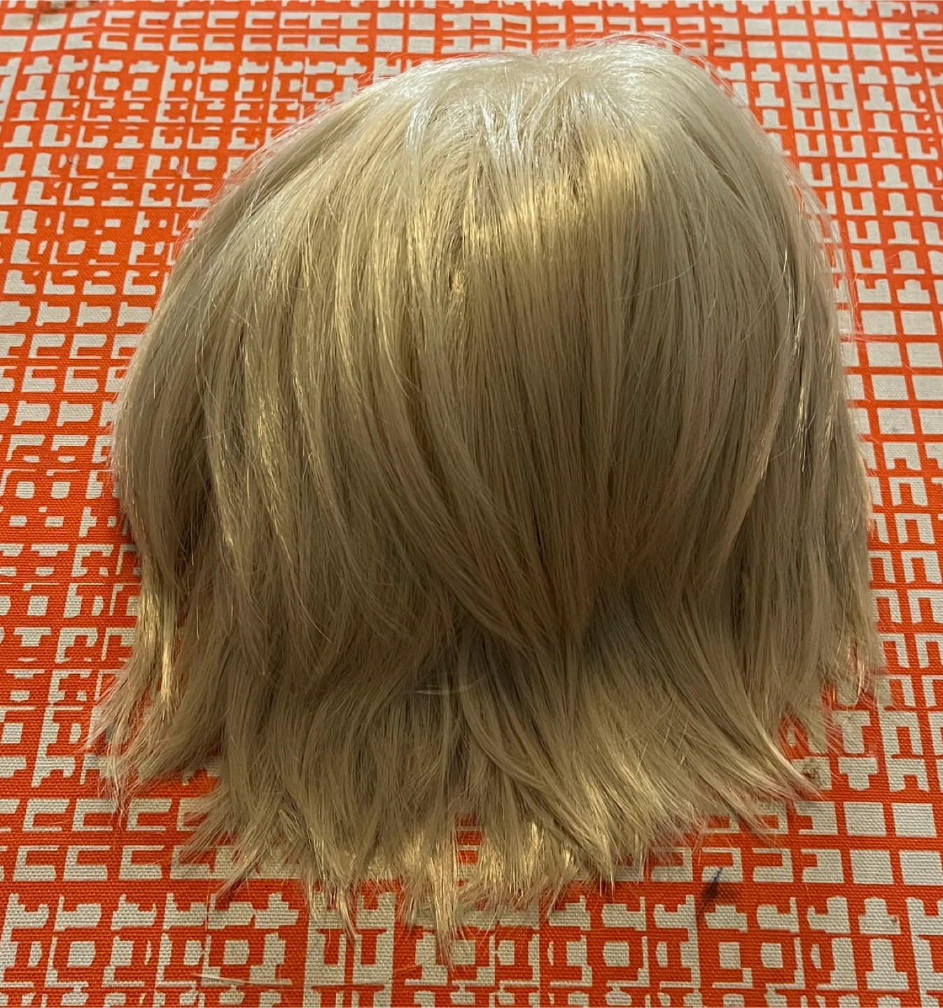 461Selling a blonde wig, perfect for a new look or costume! It appears to be in good condition with a comfortable inner cap.