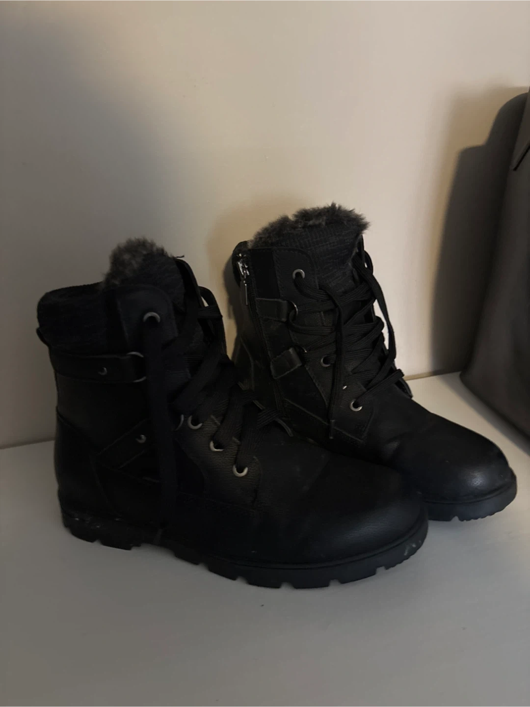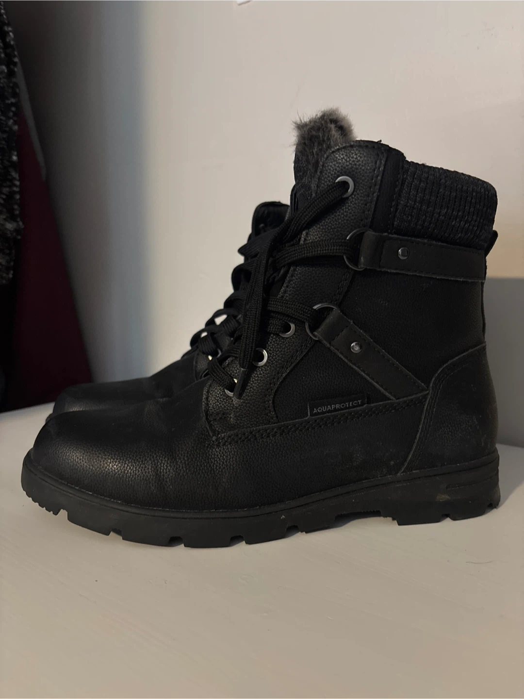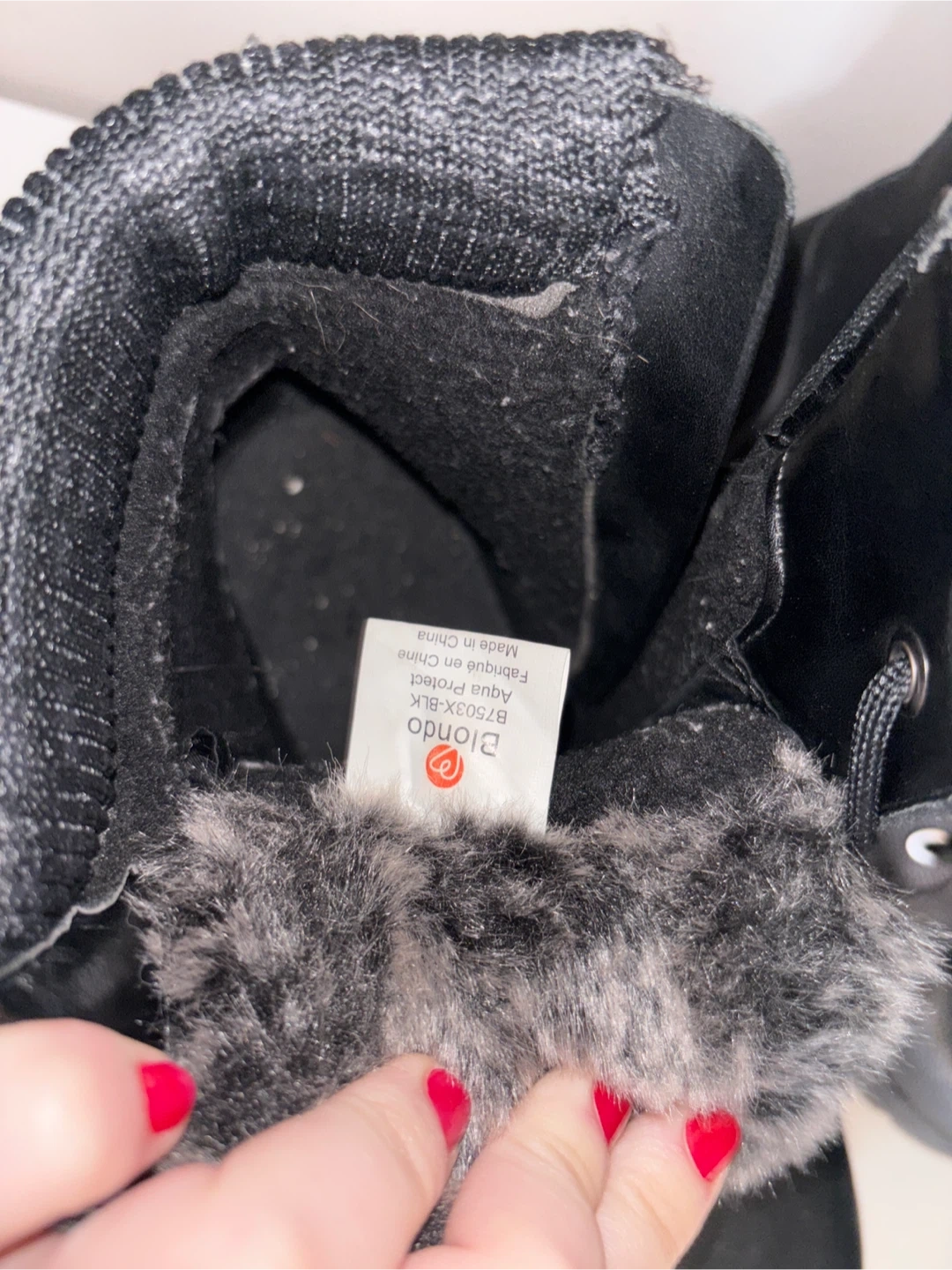 56Selling a pair of Blondo winter boots in size 9. They are black in colour and have a fur trim. The model number is B7203X-BLK. These boots are waterproof with AquaProtect