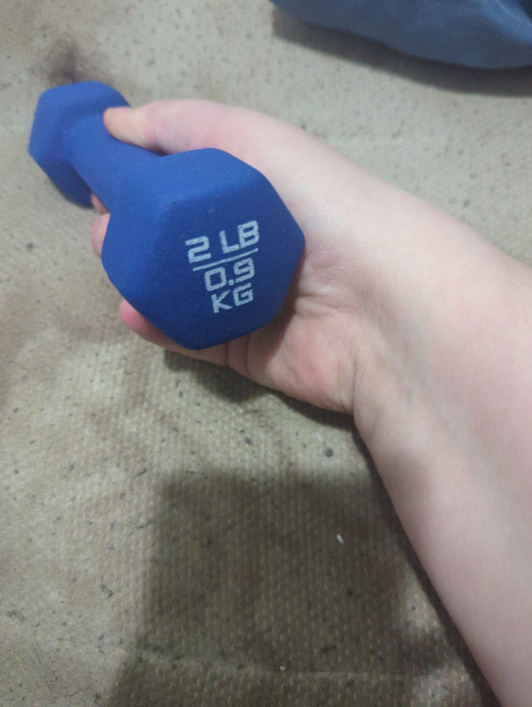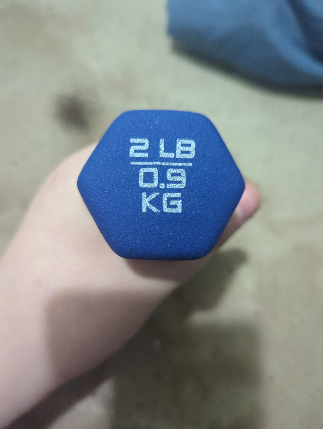10Selling a blue 2 LB dumbbell. It's in great condition and ready for your home workouts! The weight is also marked as 0.9 KG.