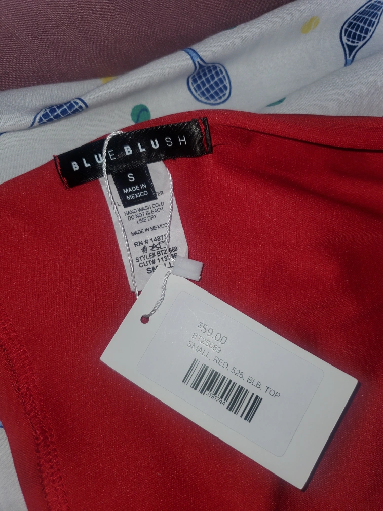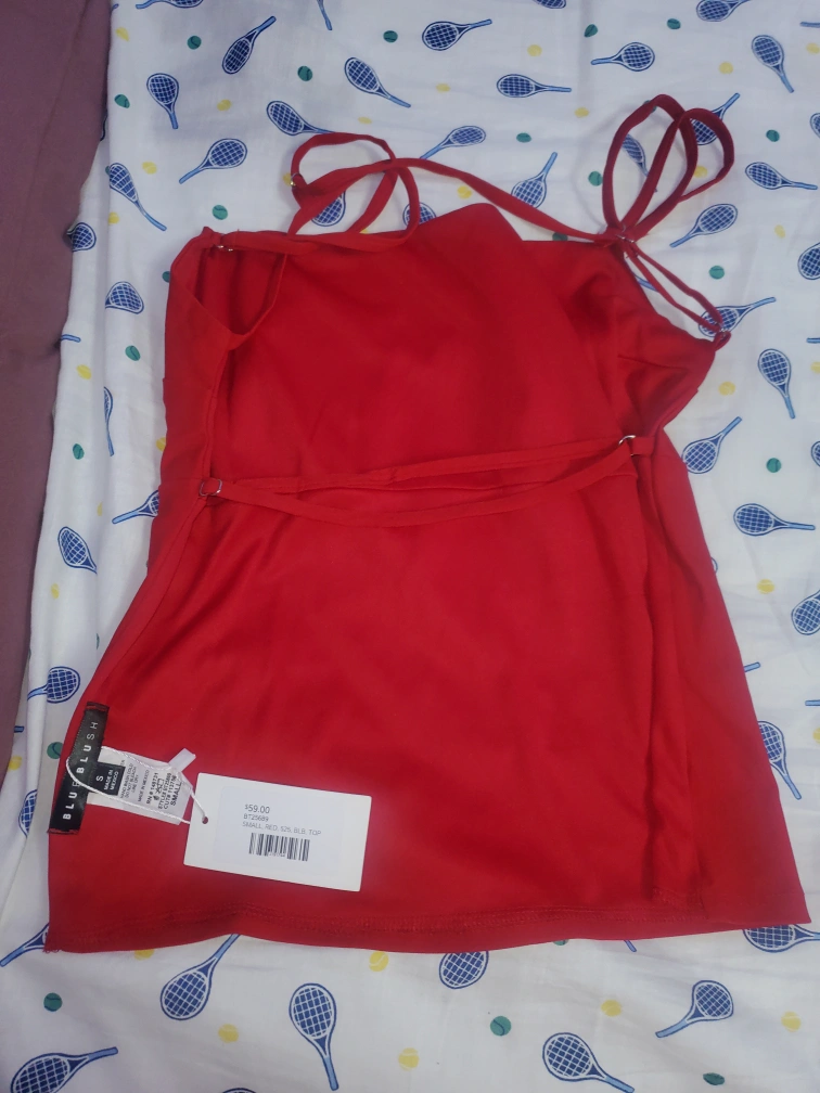 This is a cute Blue Blush red top in size small! It's brand new with tags, and was originally bought for $59. It's a beautiful red colour and would be a great addition to your wardrobe