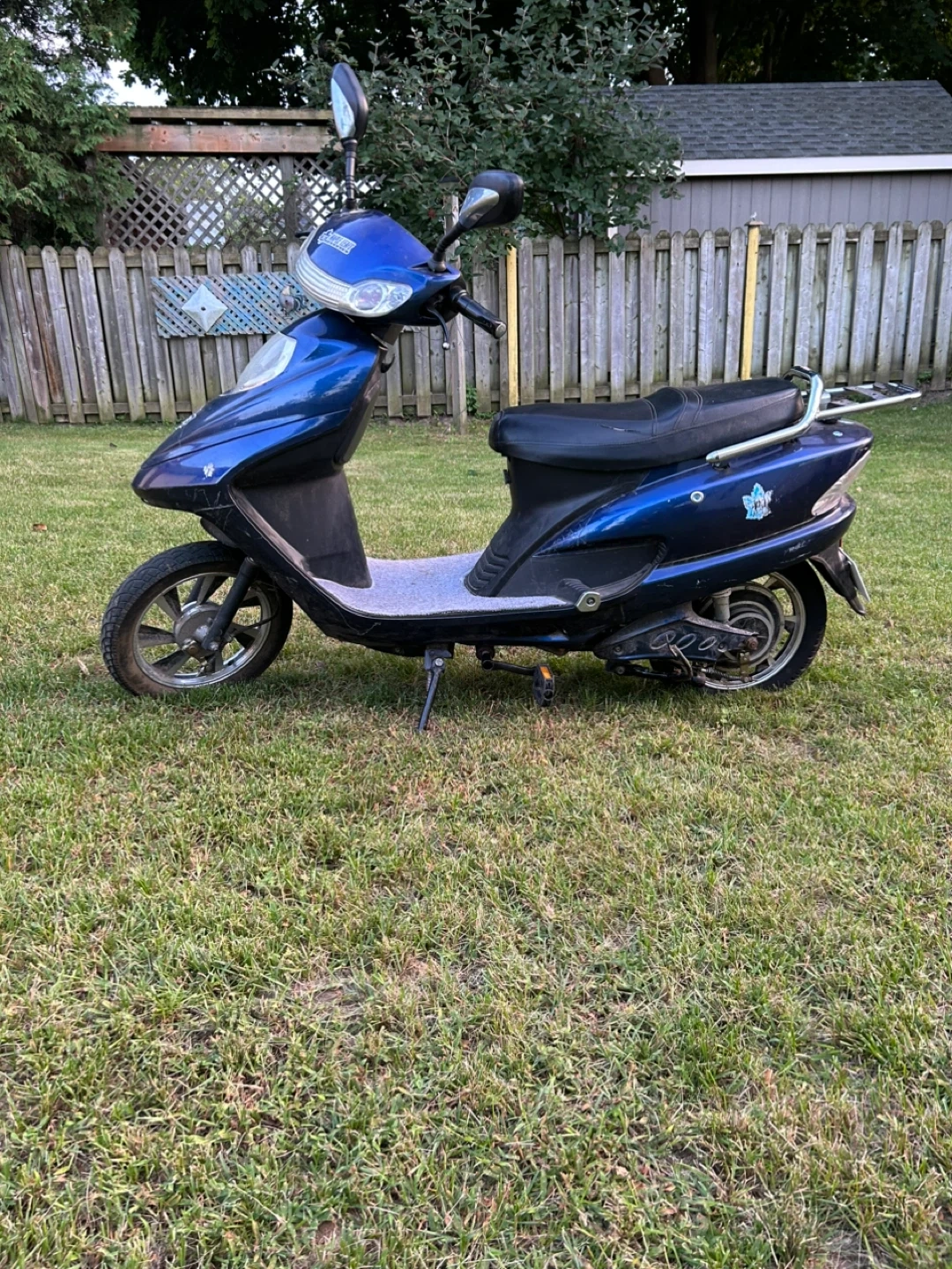 Selling a blue electric scooter! It's been used but still has lots of life left. Great for getting around town.