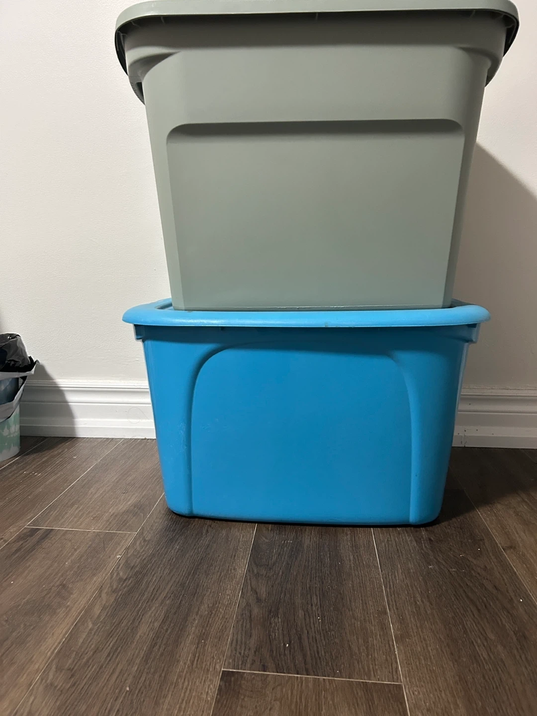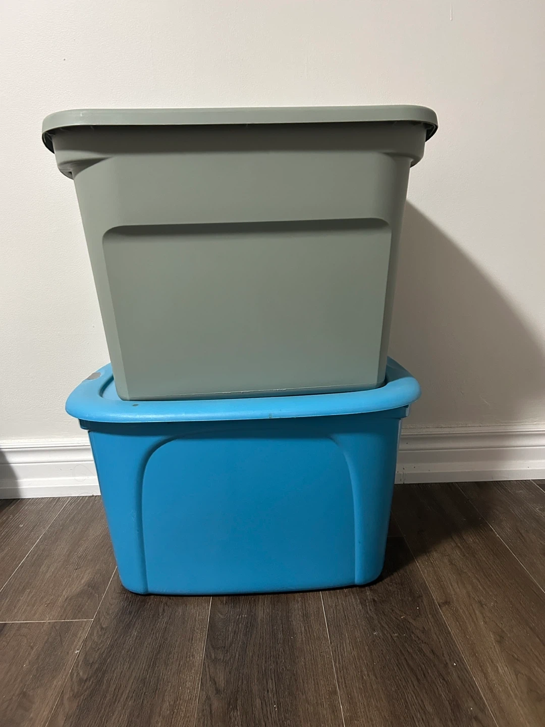Selling two storage totes, one blue and one grey. They're in great shape and ready to help you organize your space Grey one is almost brand new