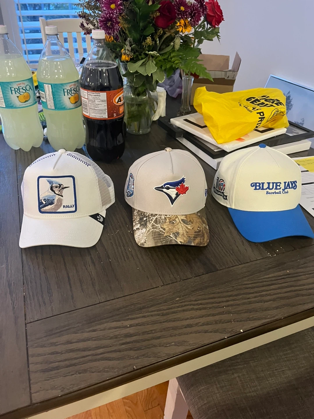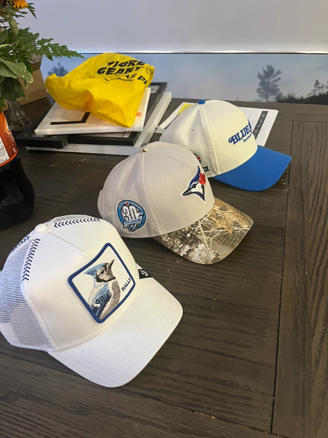 195Selling a 3 of Blue Jays baseball caps. Never worn, paid $60 for each. Perfect for any Jays fan!