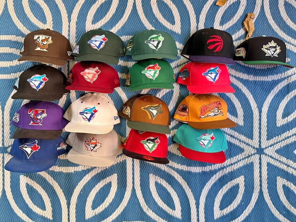 Selling my collection of mostly 7 5/8 Blue Jays hats. Message me for individual prices — each one is between $10–$20 depending on condition and style.