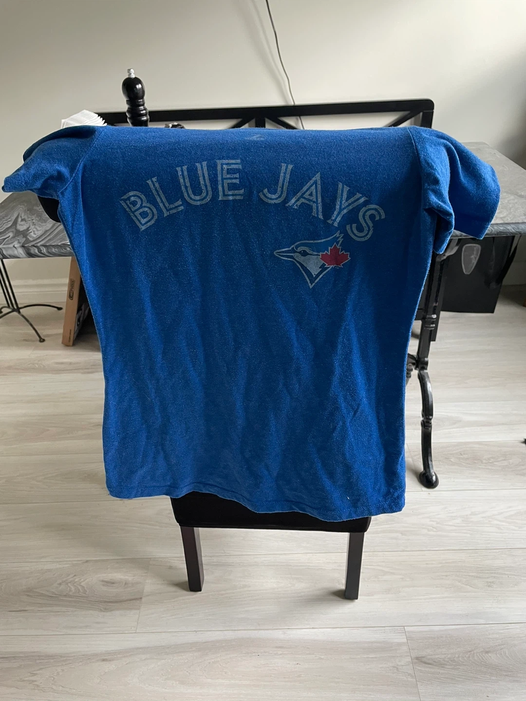 10Selling a Blue Jays t-shirt! It's blue in colour and in fair condition. Perfect for showing your team spirit!