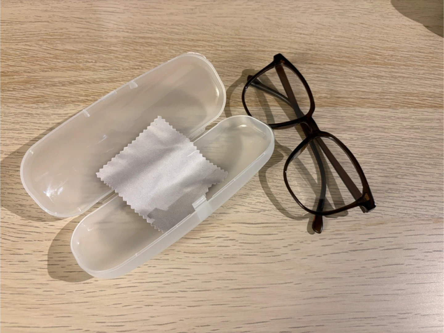 Selling a pair of Blue Light Blocking eyeglasses that come with a case and a cleaning cloth. They're in good condition and ready for a new owner