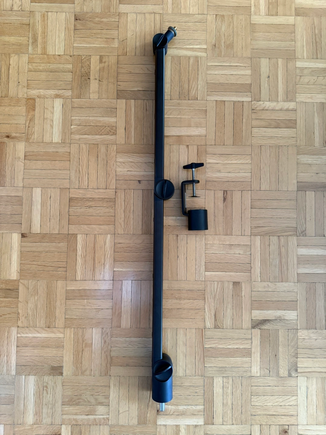 Adjustable microphone boom arm. Includes clamp. Black finish. Good for studio or home use.