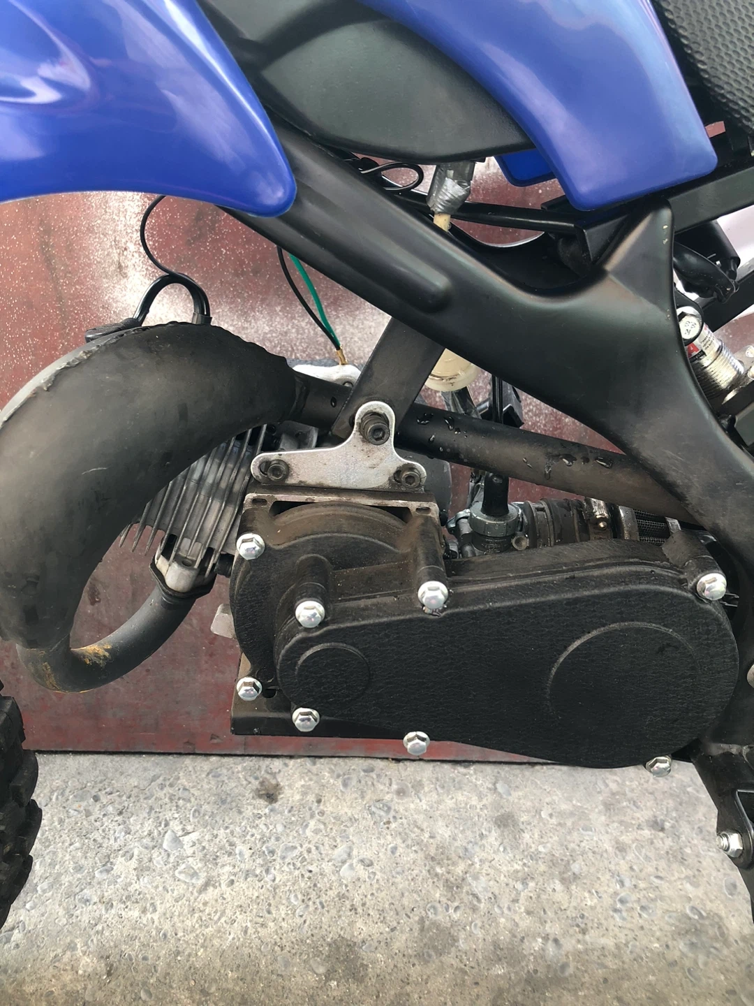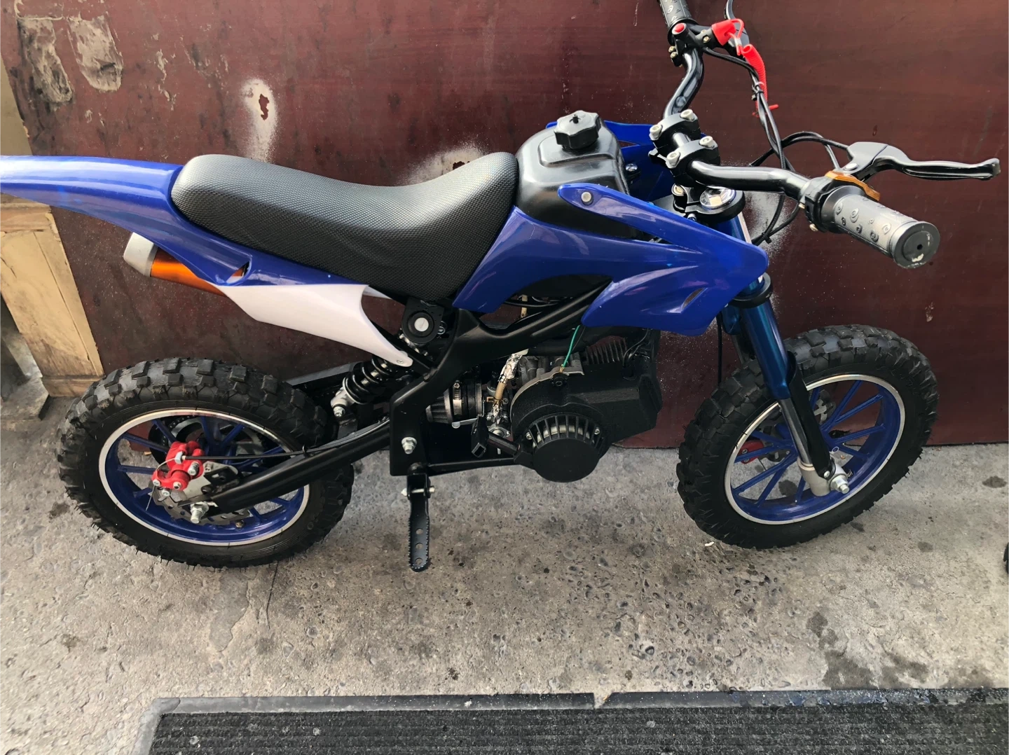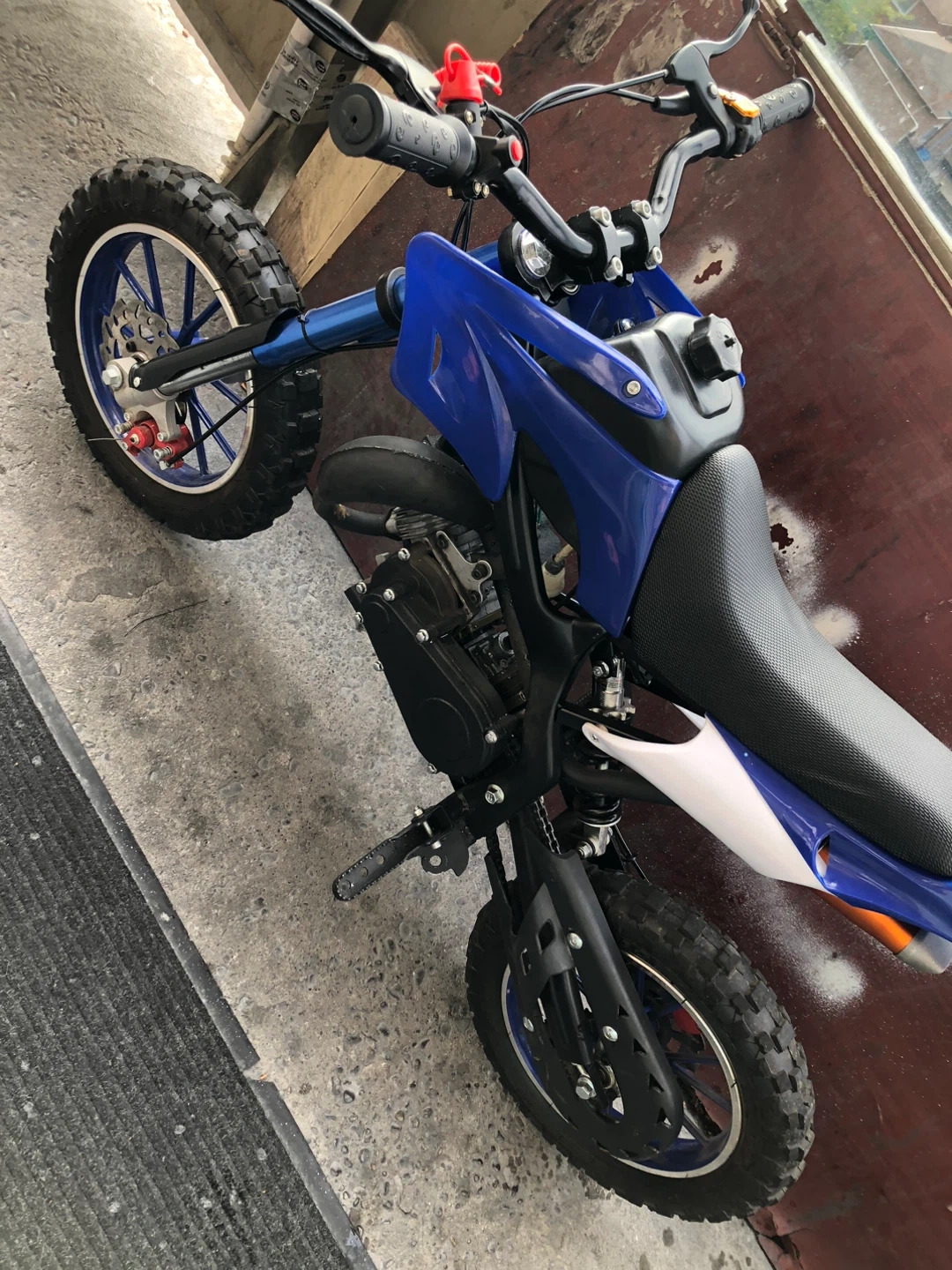 Selling a blue mini dirt bike. It looks like it's in good condition and ready for some fun and needs a new tube because the tube has a cut so needs new tube