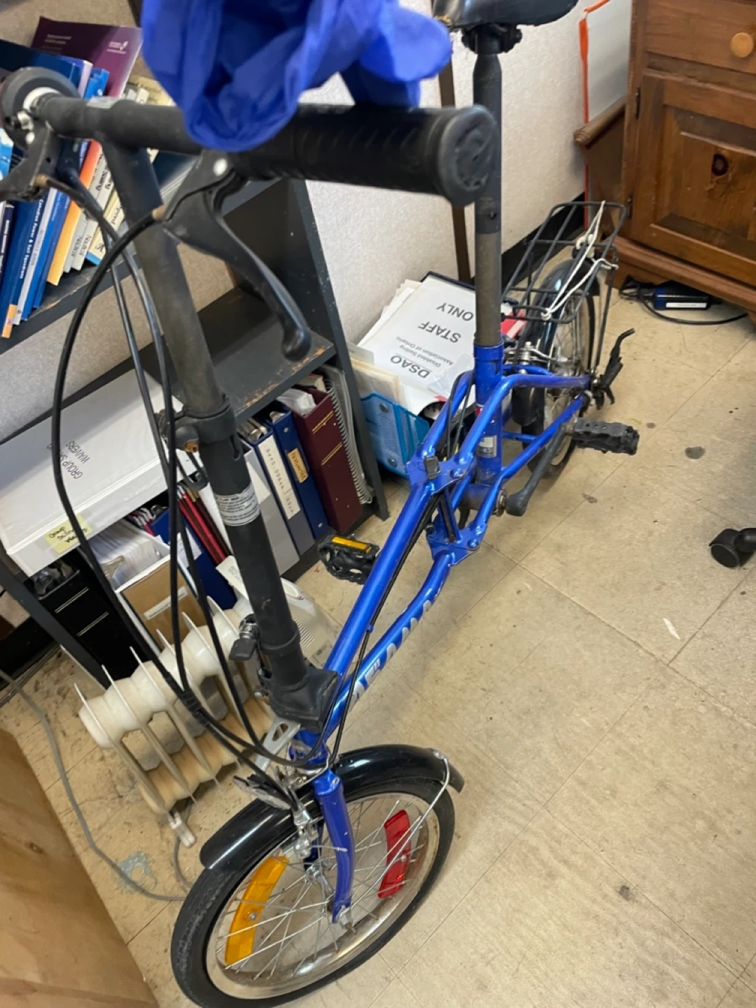 149Selling a blue folding bike! It's perfect for city commutes and easy storage. The bike is in great shape but needs some attention to its breaks. Selling bc I already have 2 folding bikes and don’t have the time to invest in making this totally city ready. Pick up can be Harbourfront, high park area or st. Clair