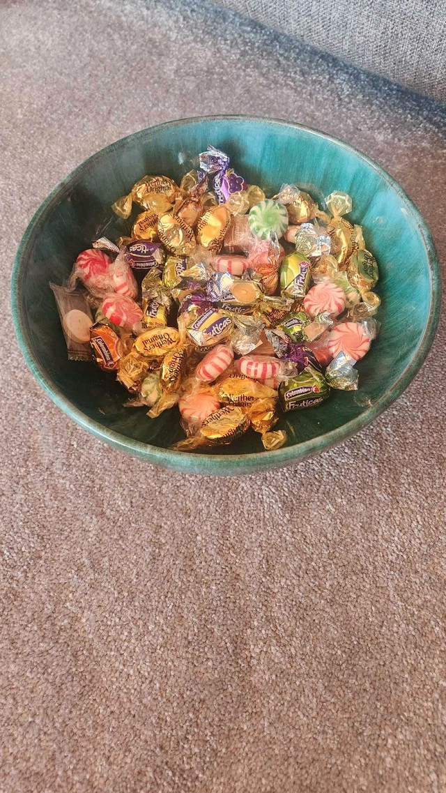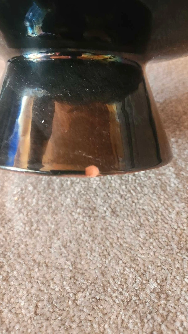 20This vintage ceramic footed bowl features a beautiful green and brown glaze. It's perfect as a decorative piece or for holding small items. The bowl is in good condition, with a minor chip on the base (as seen in the photos), adding character to its vintage charm. * **Material:** Ceramic * **Colour:** Green, Brown * **Style:** Vintage Looking for a new home, this bowl is ready to be the star of your decor! If the ad is up, it's available!