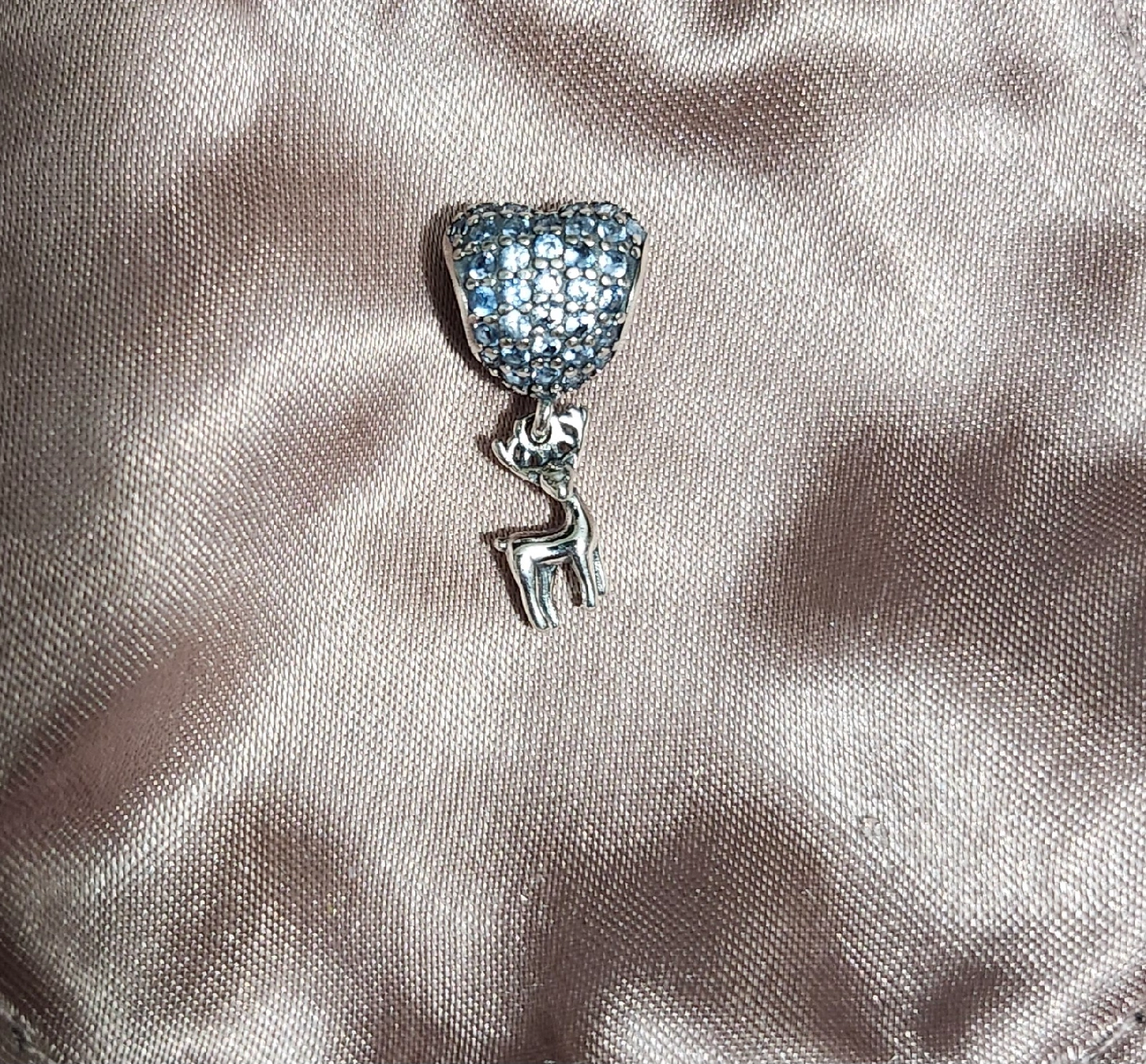 Selling a charm featuring a pave heart and a reindeer. It would make a lovely addition to your bracelet or necklace!
