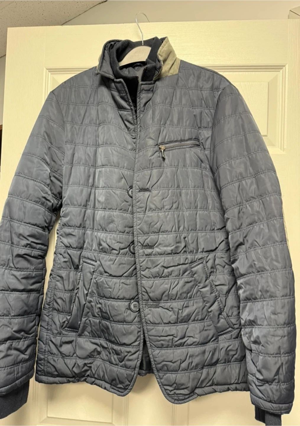 5Navy blue quilted jacket, women’s size L! Great for spring or fall weather. It's in great condition and has a zipper and button closure Pickup on Ottawa Street between 9-4pm, Monday-Wednesday or Friday! See our other listings for more items! 2710W1247