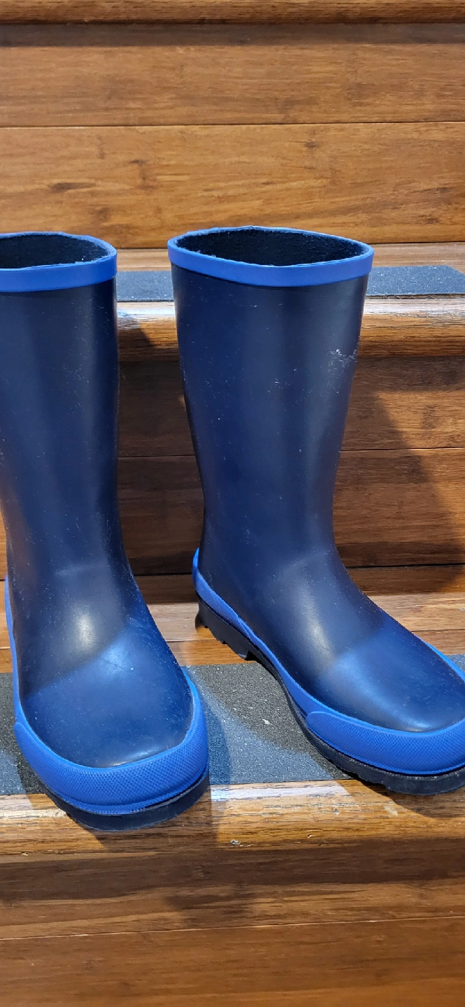 10These are a pair of blue rain boots, perfect for keeping your little one's feet dry on those wet days. Size 3