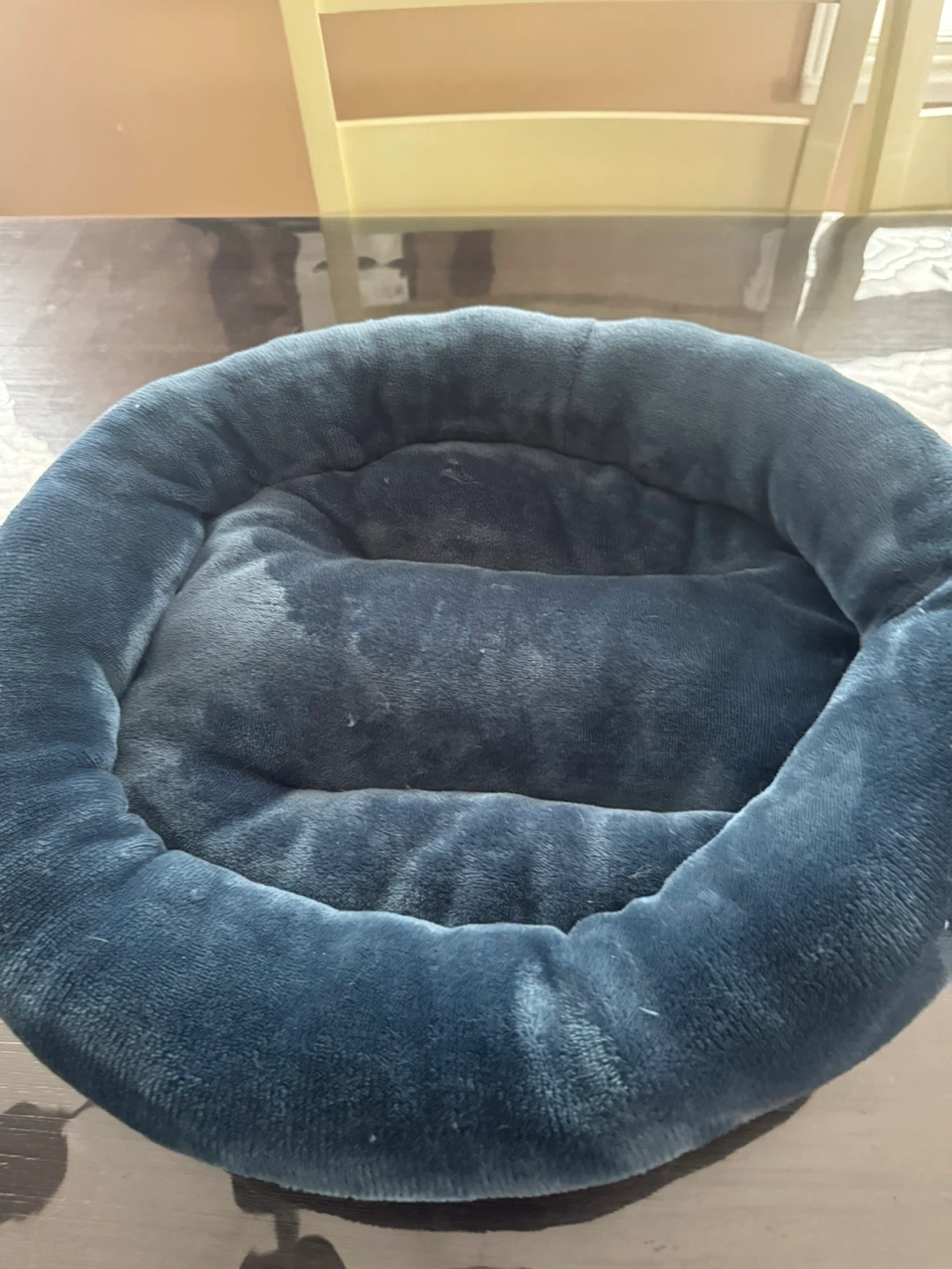 5Selling a cozy blue round pet bed! It's in great shape and perfect for your furry friend to curl up in. The soft material will keep them comfy and warm