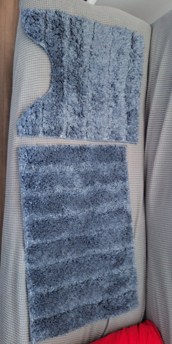 254Selling a cozy two-piece bathroom rug set in a lovely blue shag material! Includes a standard bath mat and a toilet contour rug to add some comfort and style to your bathroom. Bath mat is 23"L x 15"W Toilet contour is 18"L x 15"W