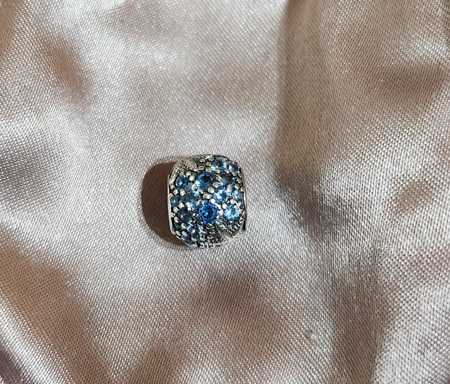 449Add a touch of sparkle to your bracelet with this lovely charm! It features a beautiful blue sparkling star design that will surely catch the eye. Perfect for adding a pop of colour and elegance to any bracelet.
