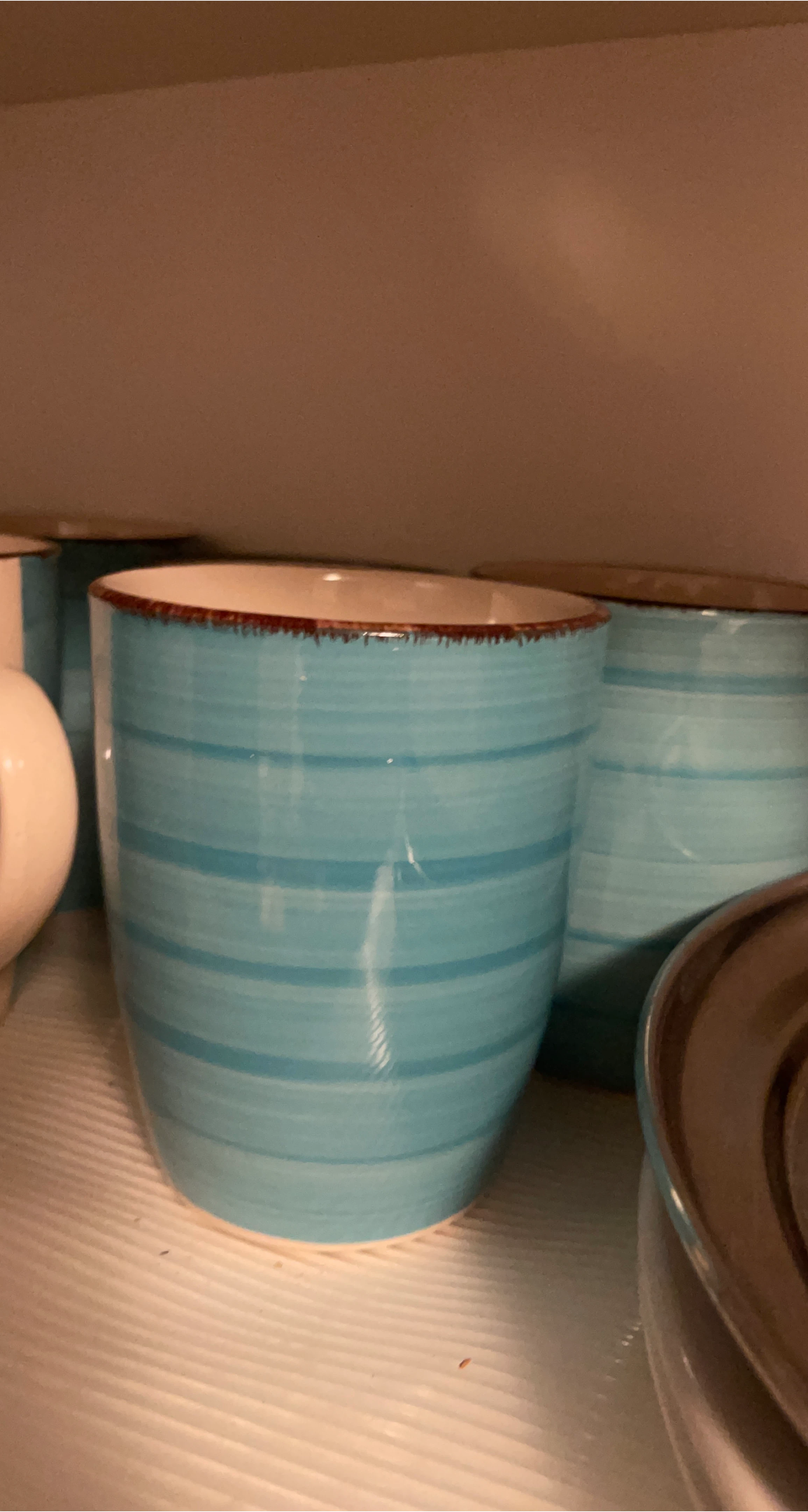 60Here's a cute blue striped ceramic mug! It's in great condition and ready for a new home. Perfect for your morning coffee or tea! Set of 4 perfect for family of 4 ππ brand new never used.