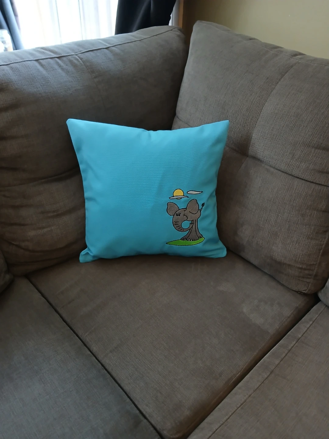 15Cute blue throw pillow case featuring an adorable elephant design! It's in great shape and would be a lovely addition to any room, especially a kid's room or nursery. One of a kind, hand made. Fits 18"×18" Pillow form.