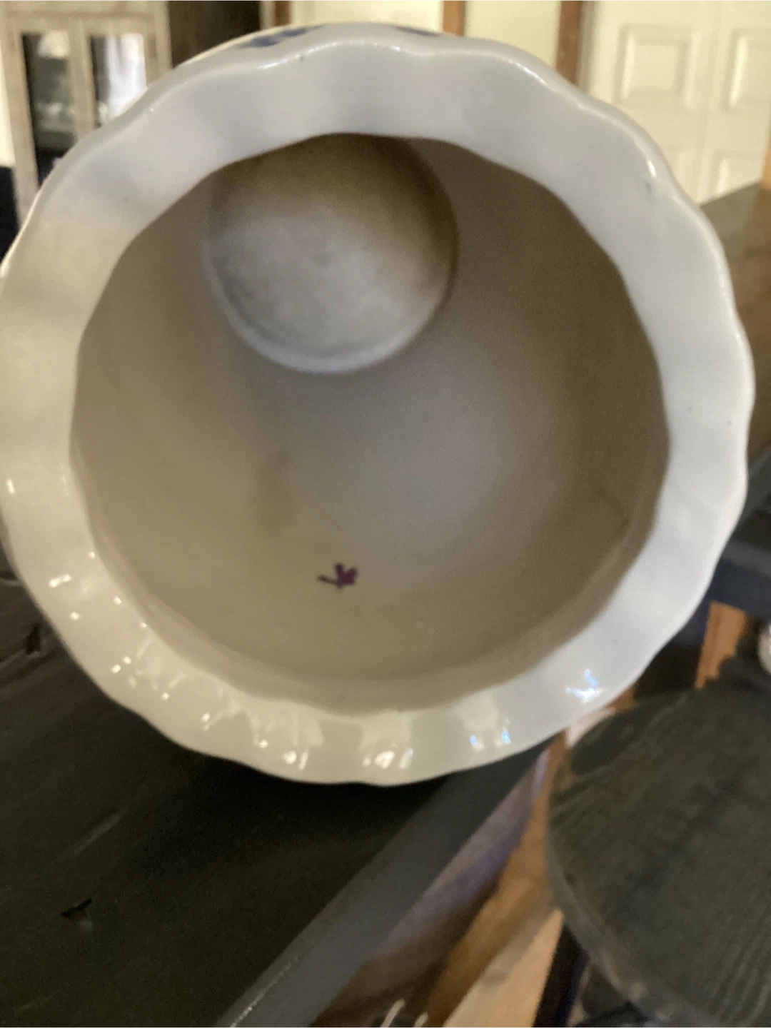 15Selling a beautiful blue and white floral vase. It's about 12 inches tall and has a diameter of about 7 inches. It would look great in any room!