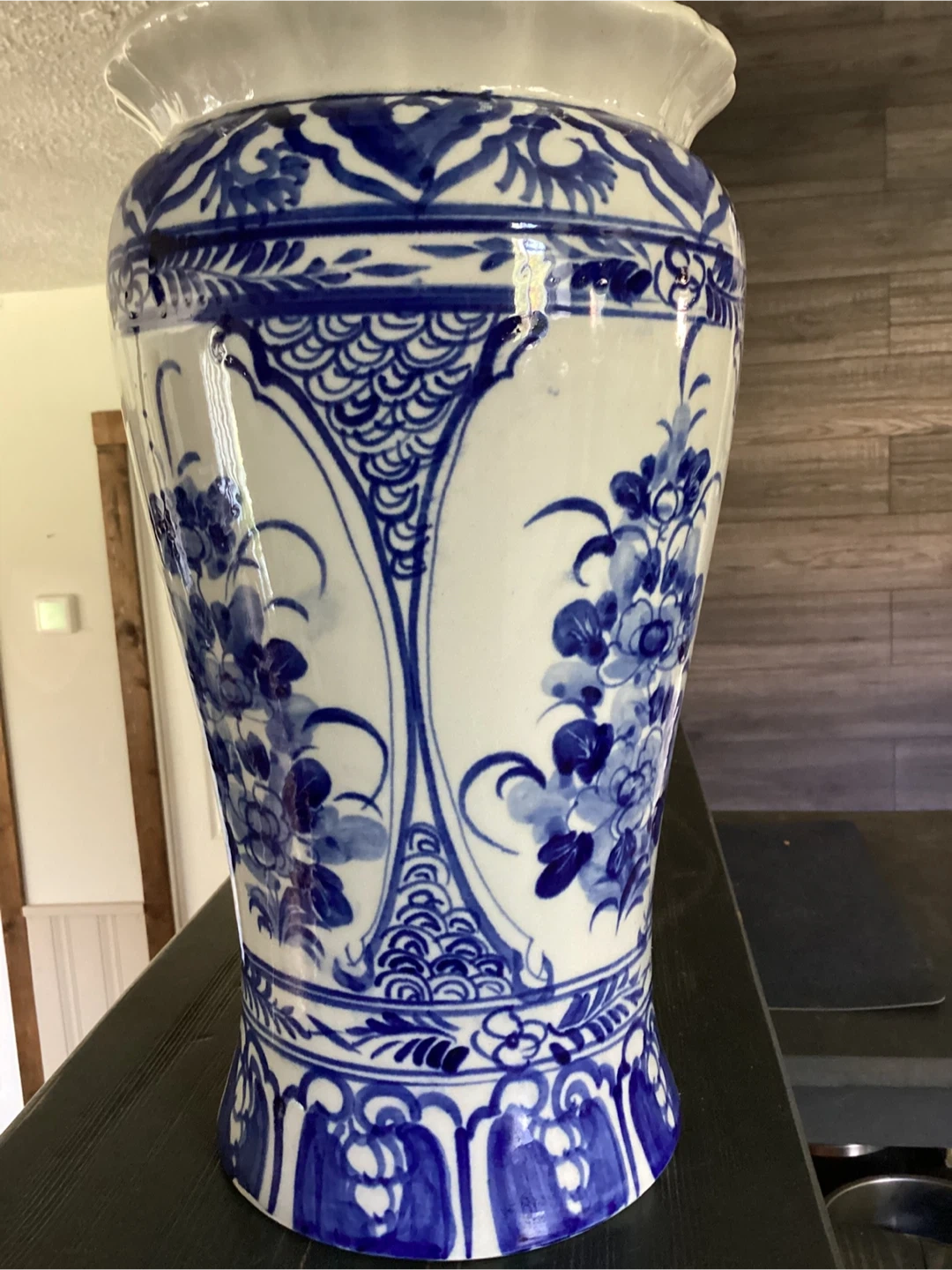 Blue & White Floral Vase - 12" tall, 7" diameter