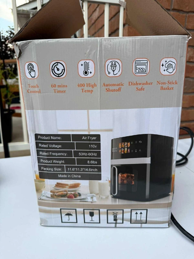 15Bluebow 6Qt 8-in-1 Digital Air Fryer – Black – Brand New. Cook healthier and smarter with the Bluebow 6Qt Air Fryer, designed for convenience and family-sized portions. ✅ 6-quart capacity – perfect for family meals ✅ 8-in-1 cooking functions – fries, chicken, baked goods & more ✅ LED digital touchscreen – simple and modern controls ✅ Visible window – monitor cooking without opening ✅ Roasting basket + auto shutoff protection for safety ✅ Temperature range: 175–400℉ with 0–60 min timer ✅ Healthier cooking with up to 95% less oil while keeping food crispy and flavorful Condition: Brand new. Milton pickup, Mississauga can be arranged.