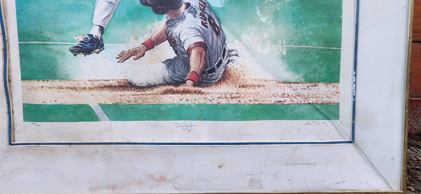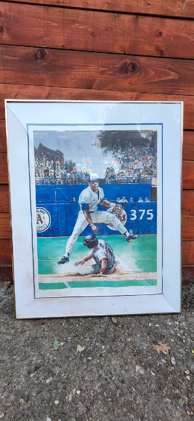 104Have a signed blueJay's Artwork. framed but has a broken glass. if interested pls bring an offer. tks