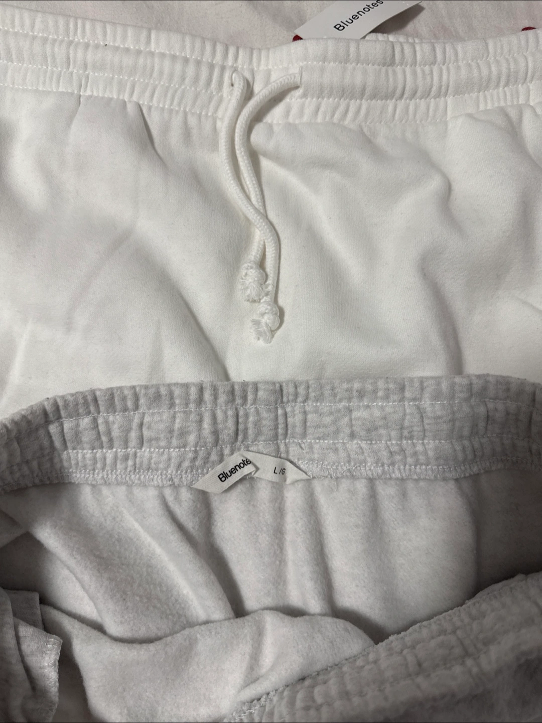 Two pairs of comfy sweat skirts from Bluenotes! One is white and the other is grey. Both are a size large and in great condition. Perfect for lounging or casual wear.