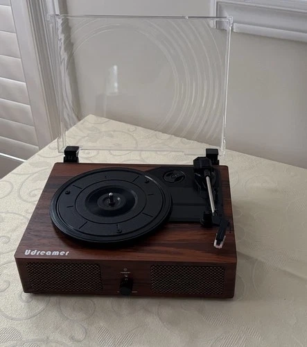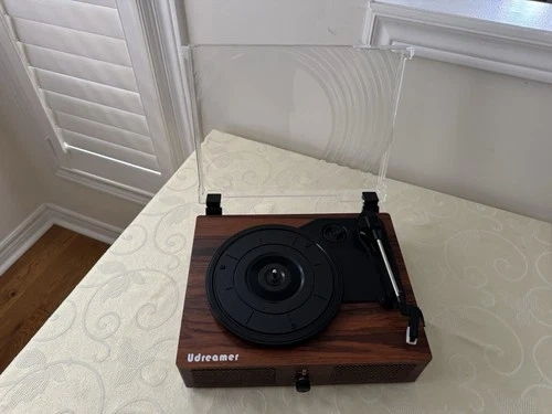 60Experience the perfect blend of retro ambiance and modern functionality with the Udreamer Bluetooth Record Player. Designed with a sleek brown finish, this A1320 model seamlessly integrates into any home audio setup, complementing both traditional and contemporary decor. Its versatile nature is evident in its ability to play your cherished vinyl collection while also streaming your favorite digital tracks via Bluetooth connectivity. Ideal for audiophiles and casual listeners alike, this record player is a standout addition to your home audio components. With easy operation and a compact design, it's not just a statement piece but also a practical one. Enjoy the rich, warm sounds of vinyl and the convenience of wireless streaming with this stylish Udreamer creation.