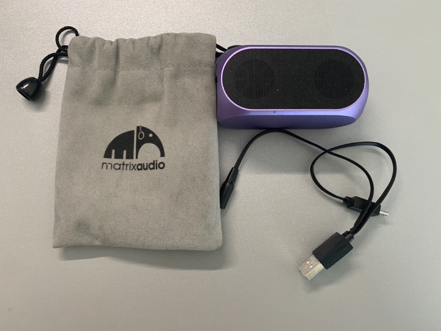Bluetooth speaker + cable (usb a, micro usb, audio jack) + pouch