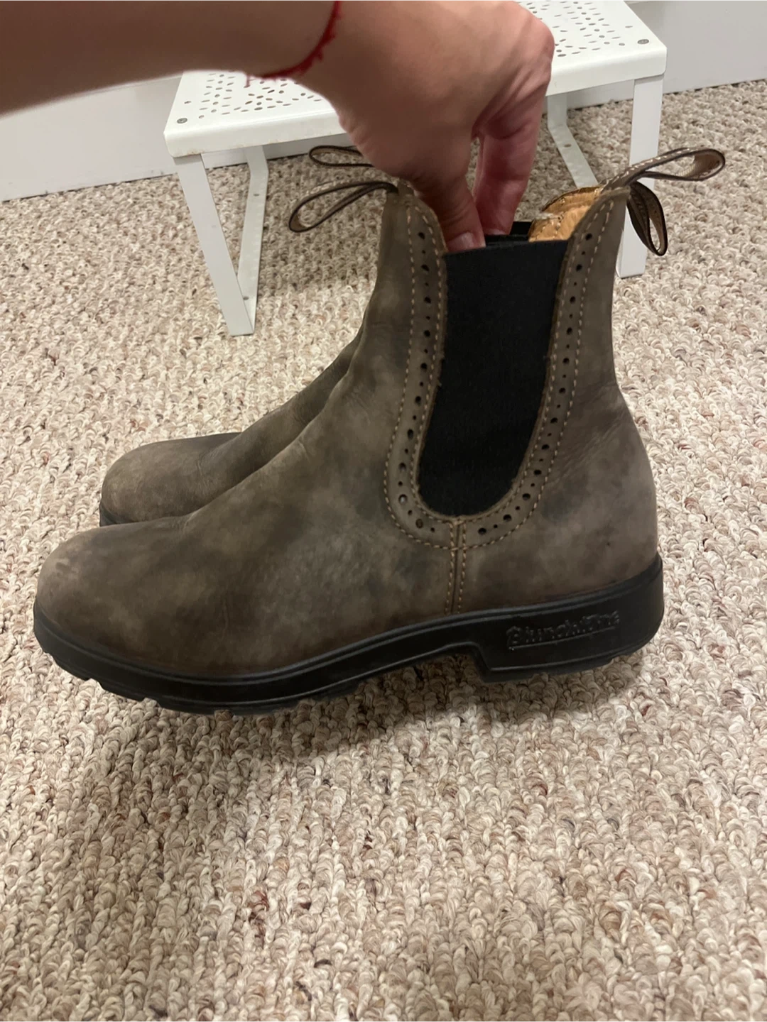 60Selling a pair of Blundstone Chelsea boots in brown leather. They are in great condition and are a size 9. Perfect for everyday wear! Pick up in South Granville.