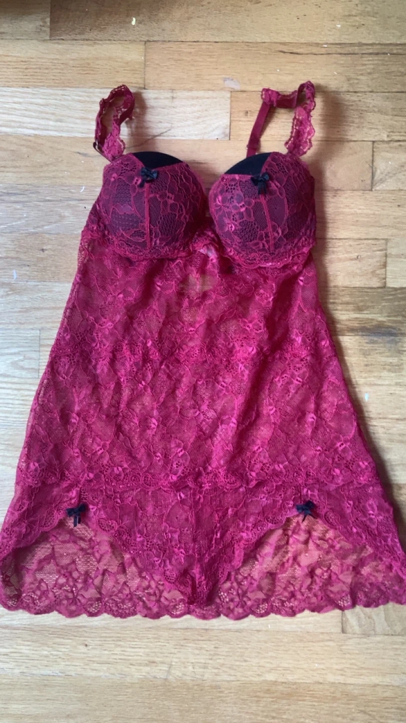 73Selling a cute Blush lingerie piece! It's a size small and features a beautiful lace design in a lovely burgundy colour.