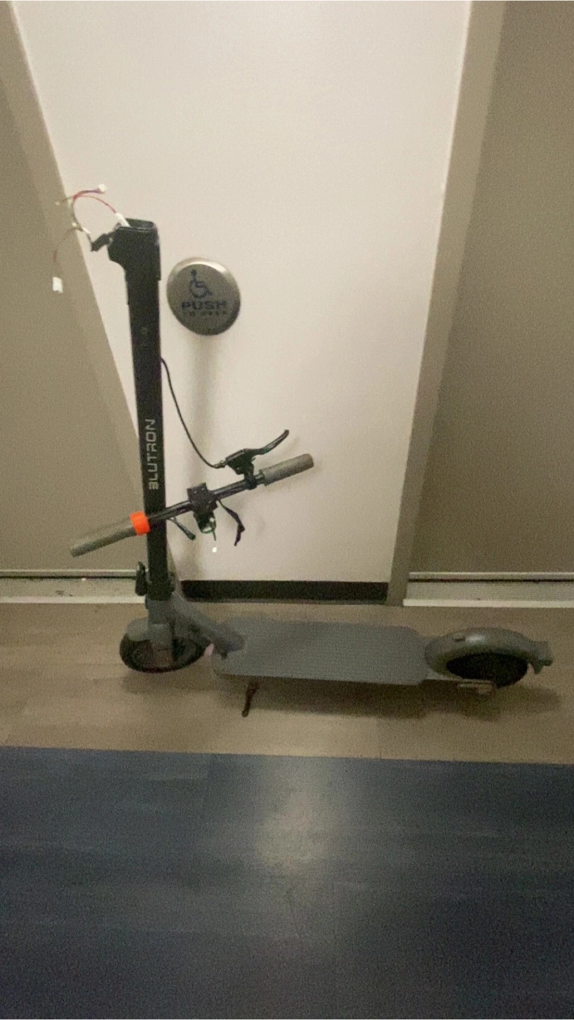 Selling a Blutron electric scooter goes for 500 brand new. It's currently not working and is being sold for parts or repair. Please see the pictures for details on the condition charger included