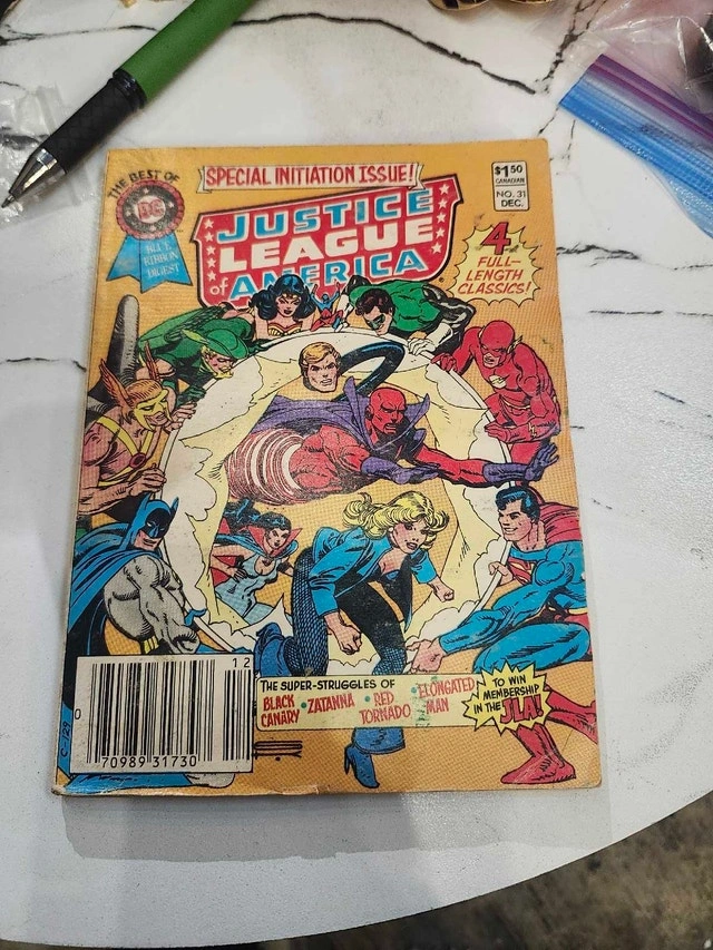 Own a piece of comic history with this vintage Justice League of America comic book, special initiation issue from November-December. This comic is in used condition, showing signs of wear consistent with its age. Great for collectors or anyone who appreciates classic comic art and stories! Similar comics are listed on Kijiji for around $10-$25 CAD, given the condition, I'm listing it at a competitive price. If this ad is up, then yes, it's still available! Cash accepted.