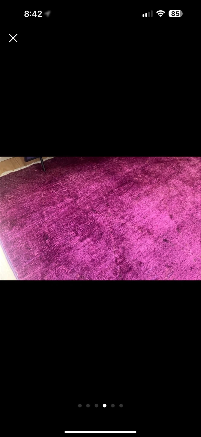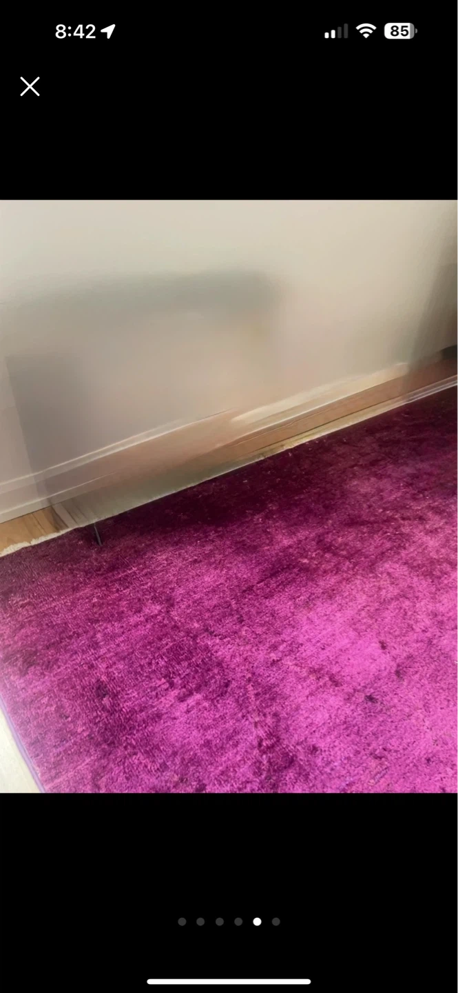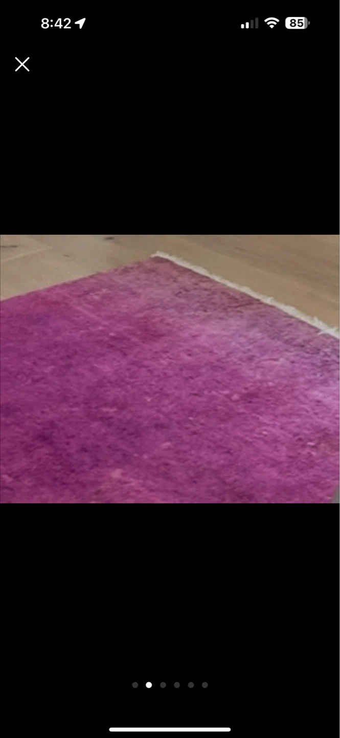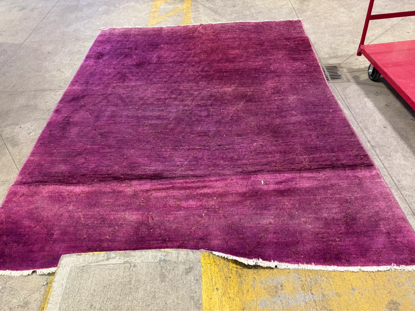 A large area rug in a vibrant magenta. Its textured pile adds a cozy feel to any room. This rug is suitable for living rooms or bedrooms.