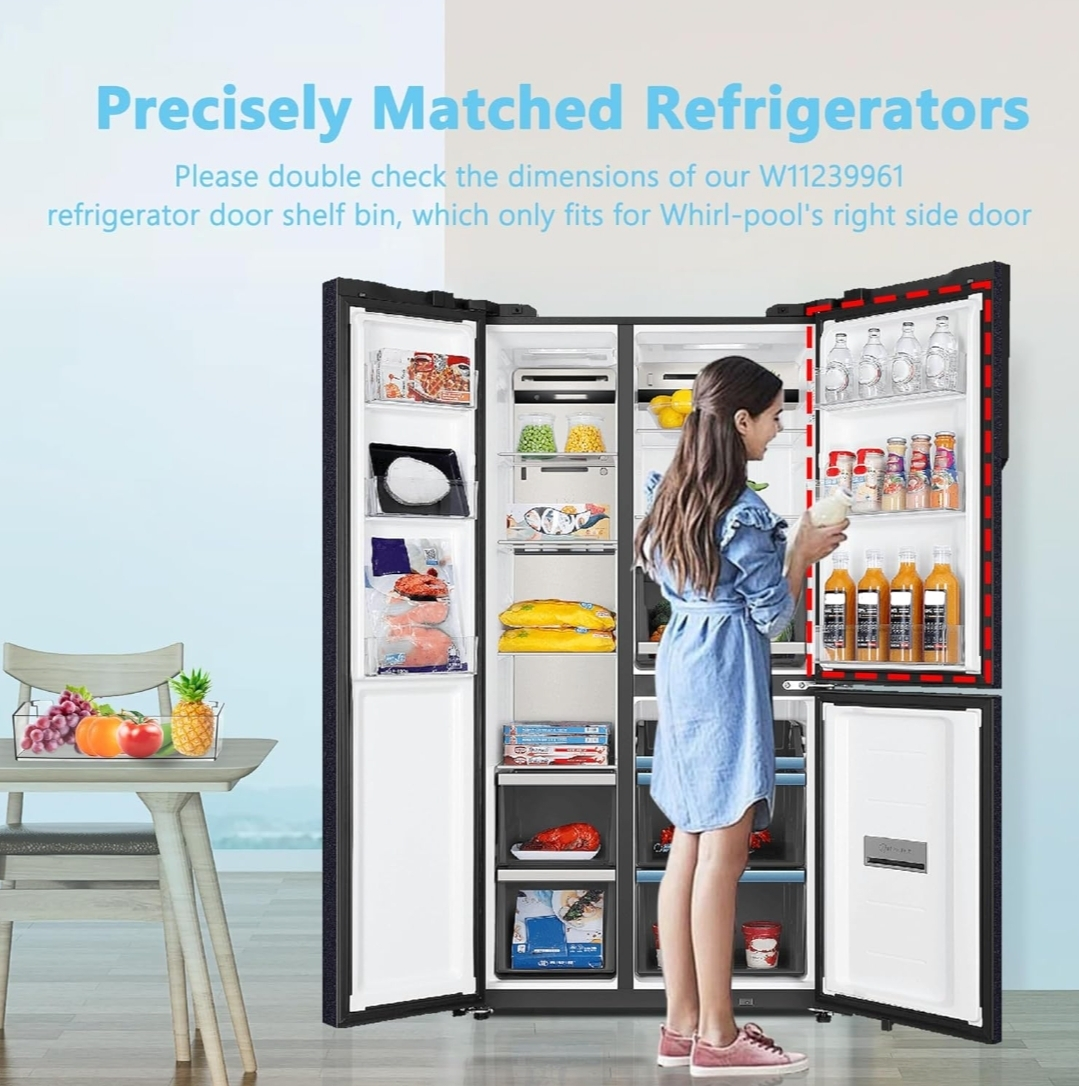 ✨️W11239961 Fridge Door Shelf Bin Compatible with Whirl-Pool Ken-More Refrigerator Door Shelf Parts W10900538, 4591452, AP6333410, PS12578777 Fit WRS315,WRS321,WRS325 (2 pcs)✨️