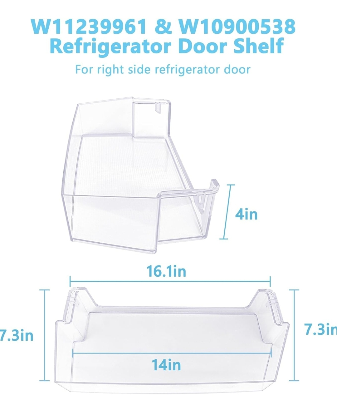 This replacement shelf is a direct replacement for part numbers: W11239961, W10900538, 4591452, AP6333410, PS12578777, and EAP12578777. Please double-check your refrigerator model before purchasing.