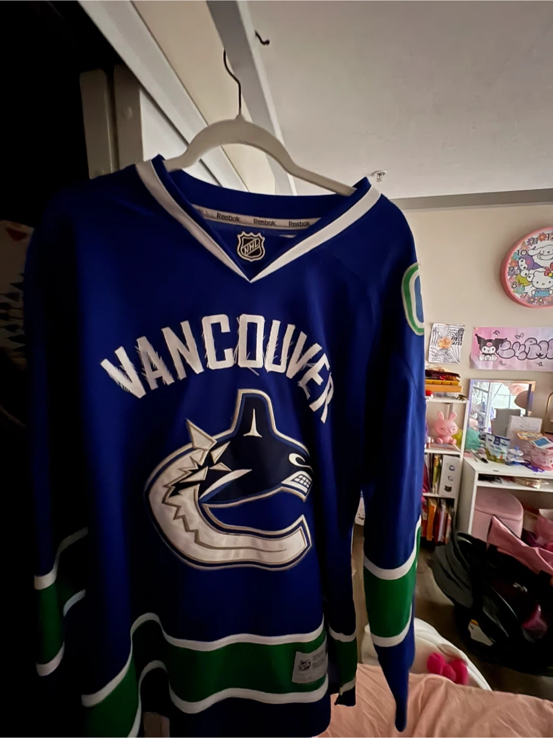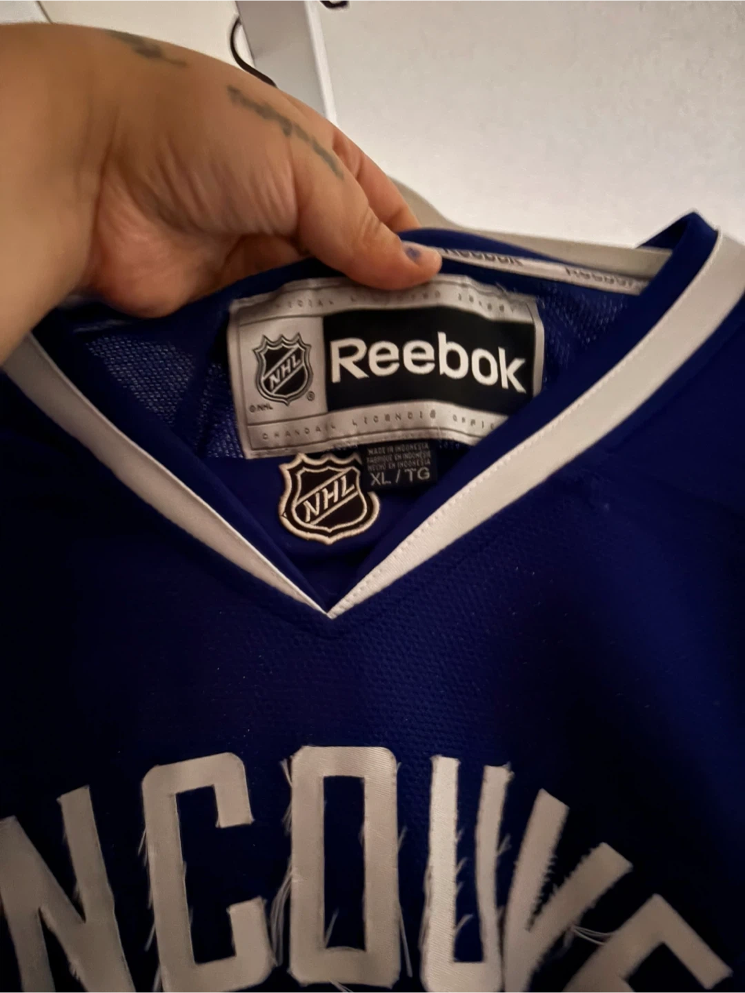 Buy & SellVancouver Canucks Reebok Hockey Jersey XL/TGVancouver Canucks Reebok Hockey Jersey XL/TG$50Show your Canucks pride with this blue Reebok hockey jersey. It's a size XL/TG and made in Indonesia. Perfect for any Vancouver Canucks fan!WHERE TO MEETCheck LocationView MapSELLERverifiedFrancescaStrathcona19111 reviews0 chats·0 favorites·4 viewsSEND CHAT TO SELLERHi Francesca! I’m interested in your listing.Hi Francesca! I’m interested in your listing.Get the Karrot app to chatSign In to chat