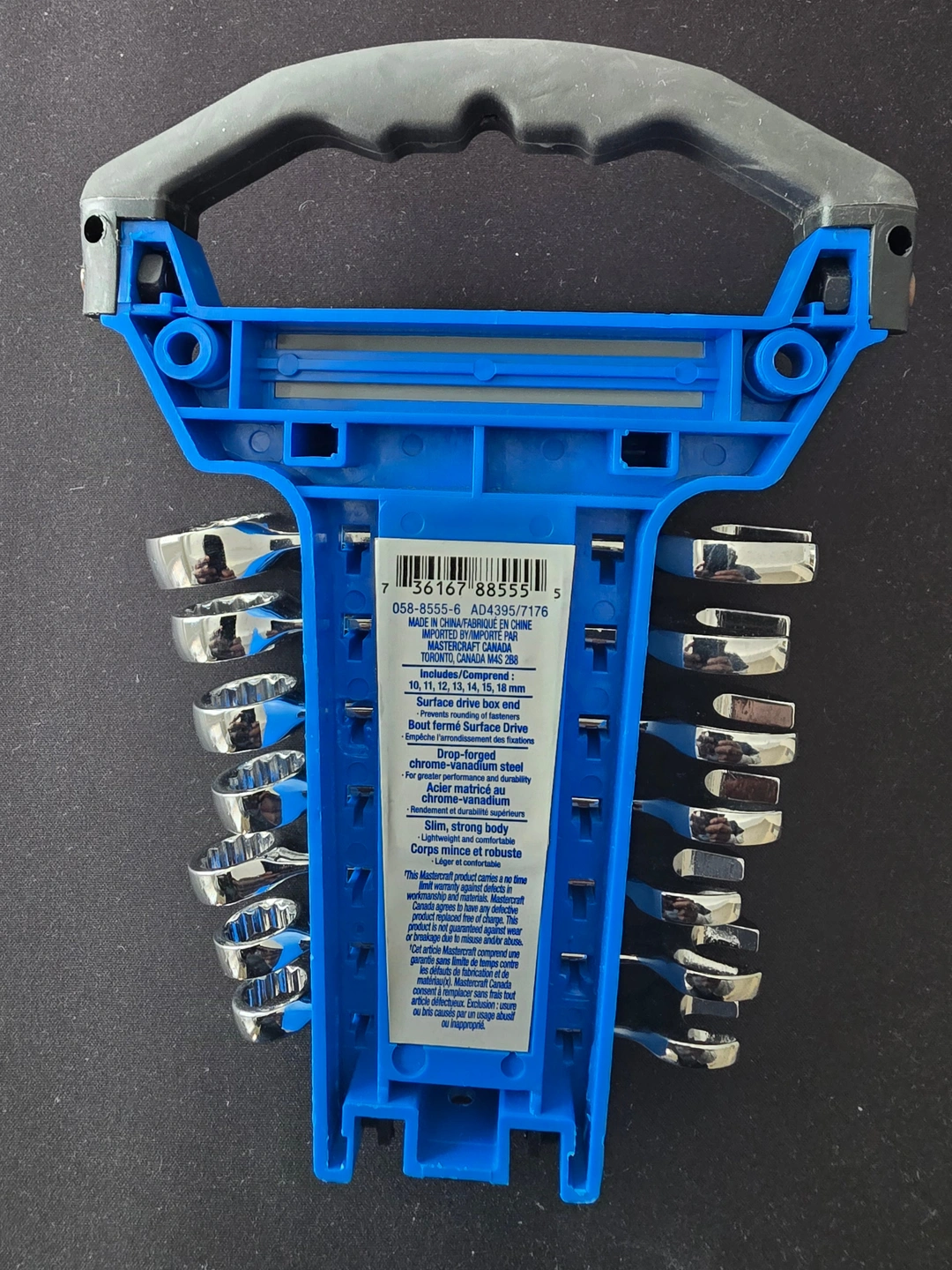 Mastercraft 7‑piece metric stubby combination wrench set.