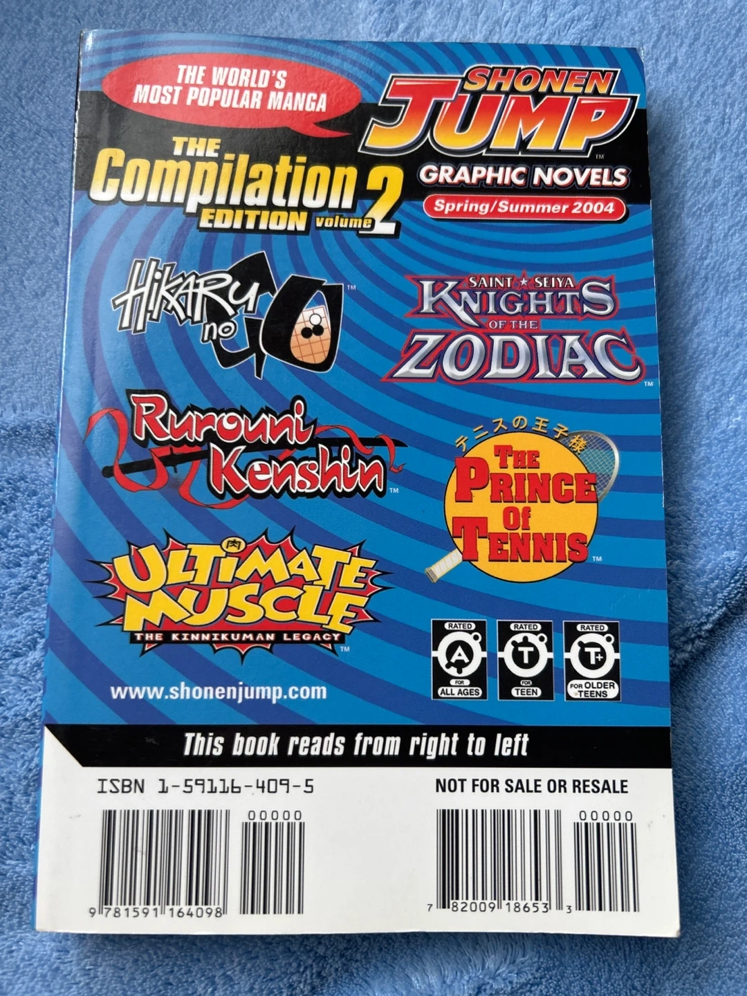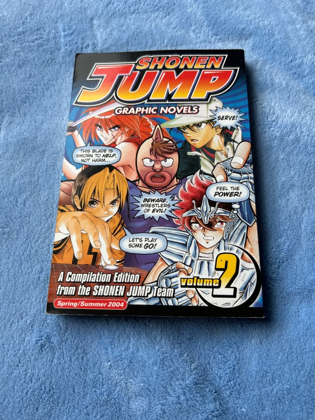 This book features Shonen Jump graphic novels, including Hikaru no Go, Saint Seiya Knights of the Zodiac, Rurouni Kenshin, The Prince of Tennis, and Ultimate Muscle. It's a compilation edition from the Shonen Jump Team. This edition is rated A for all ages.