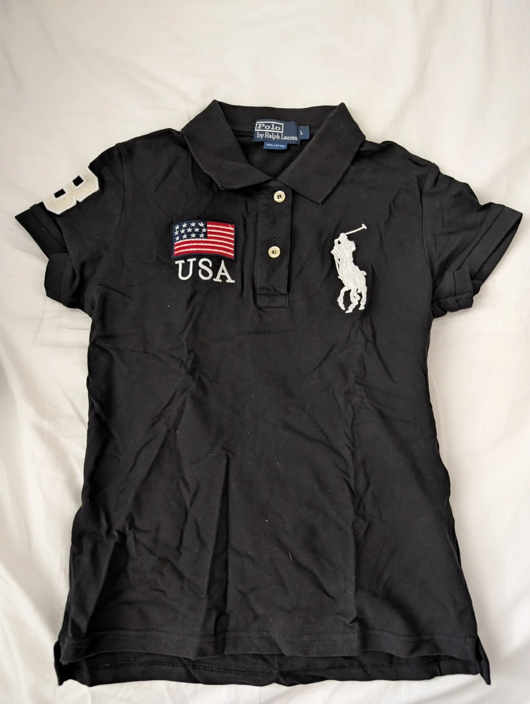 Polo Ralph Lauren Black USA Flag Polo Shirt Authentic Kids