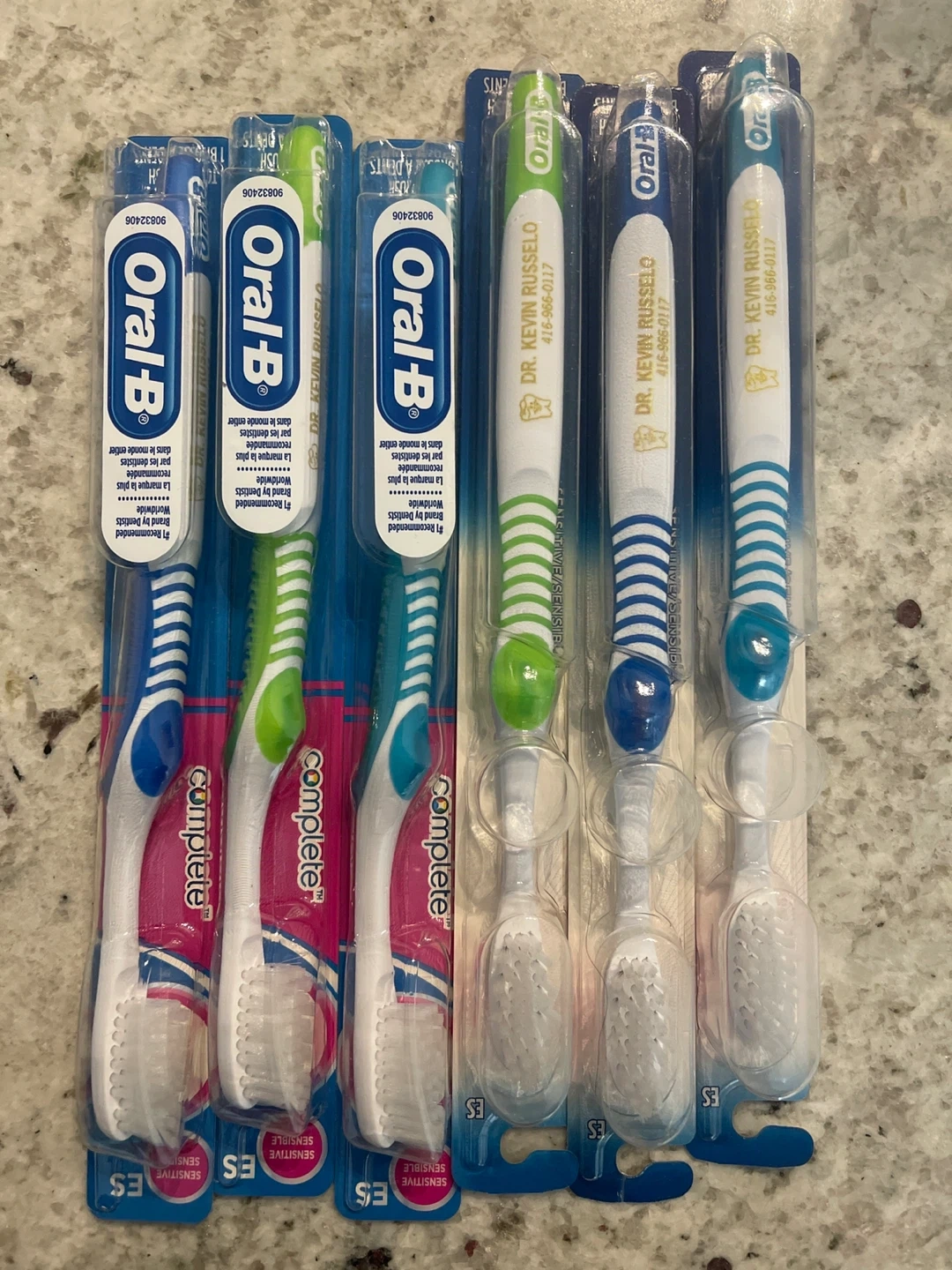 This is a pack of 6 Oral-B Complete Sensitive toothbrushes. They are designed for sensitive teeth and gums. Comes with protective caps.