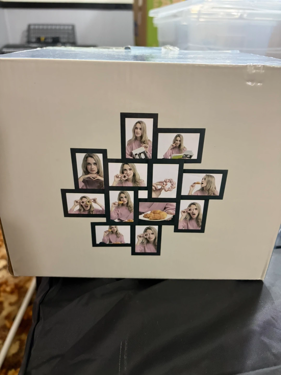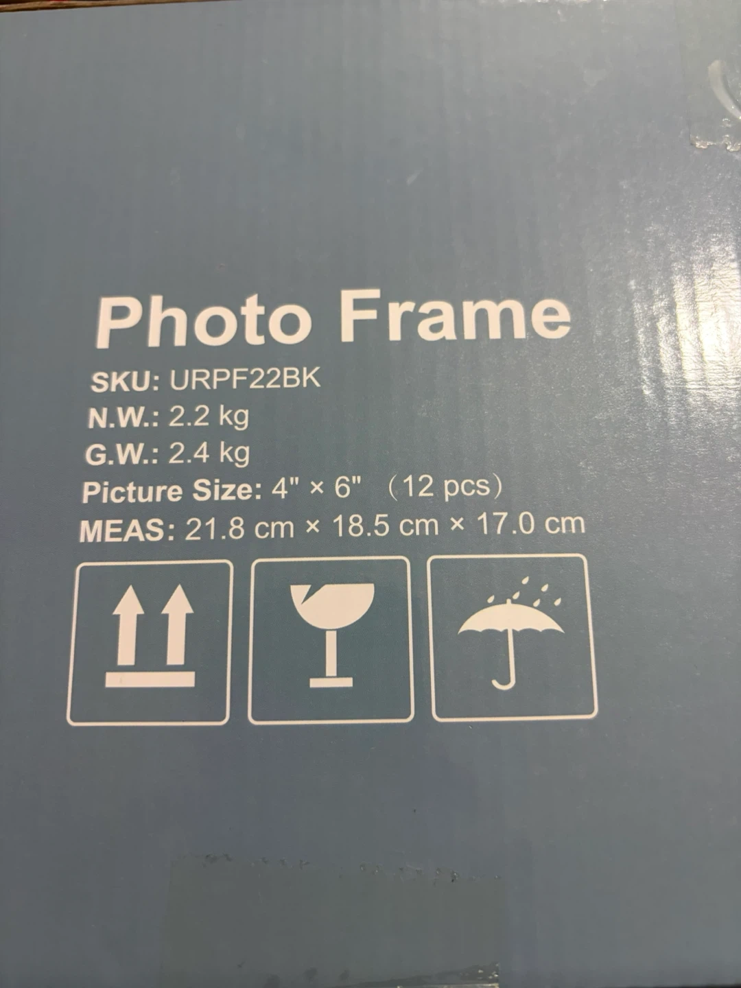 This is a SONGMICS photo frame collage that holds 12 pictures. Each picture slot is for a 4" x 6" photo. The frame is black and includes assembly hardware.
