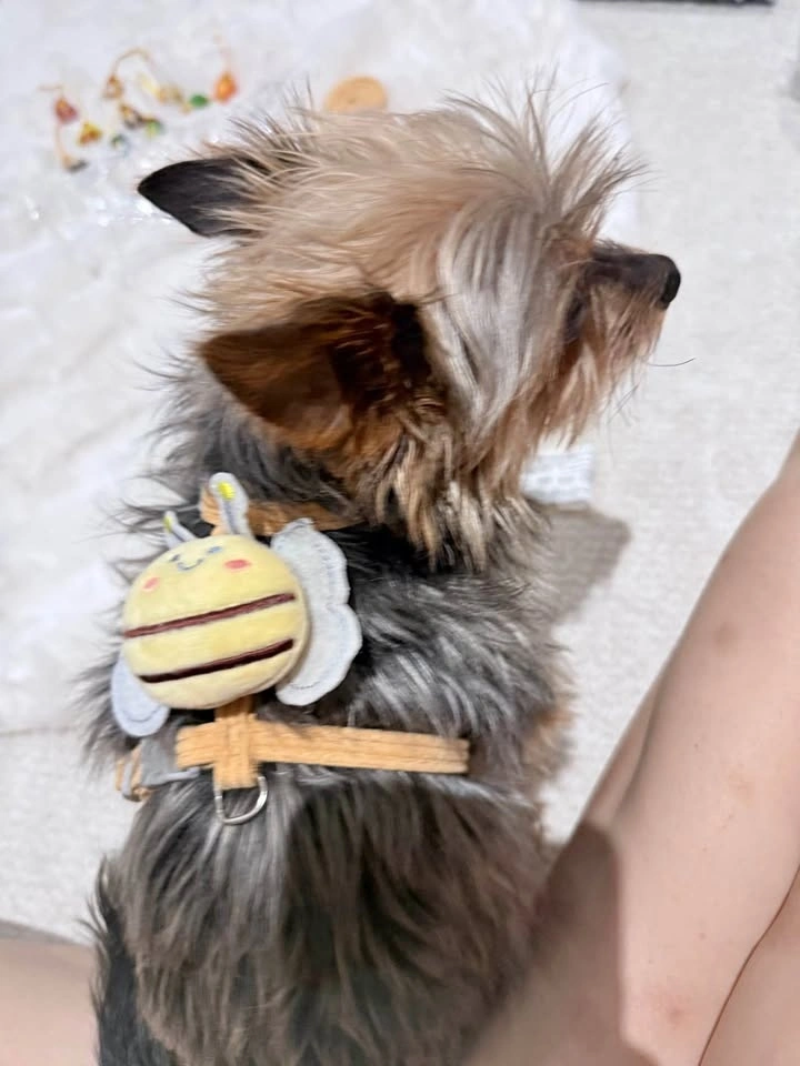 My model here got too chubby and now he cannot fit 😩 it’s super tight on him… anyway he’s only tried on, never used . I’m sure he’s about 8 pounds now. 😓 and yes, you can bring your dog to try it on if you’d like.