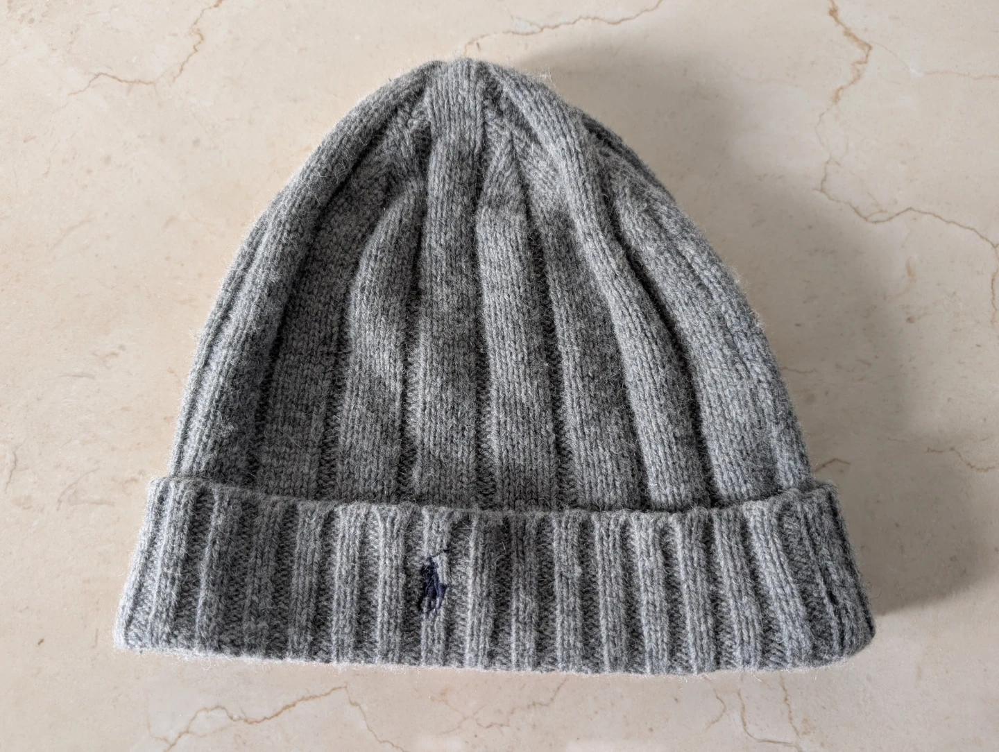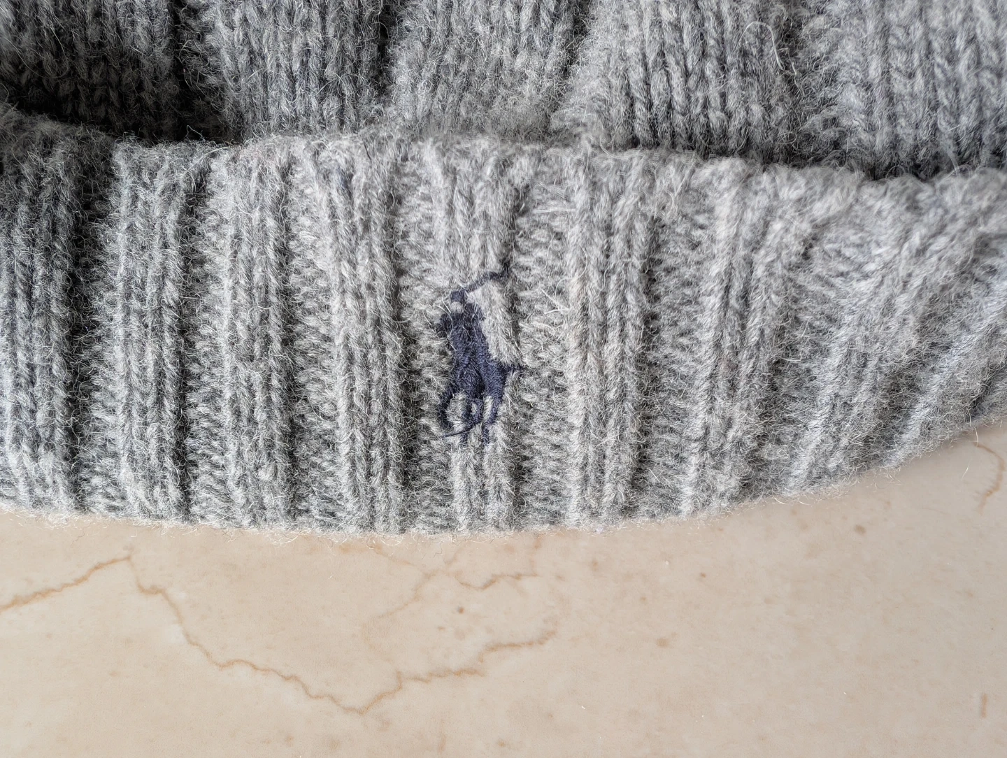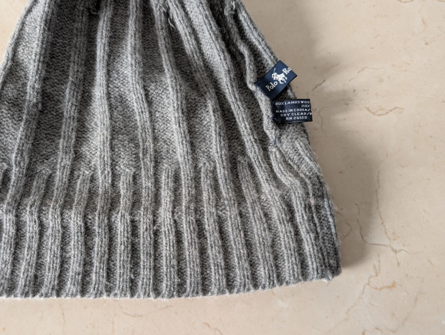 Ralph Lauren Grey Wool Ribbed Beanie Hat