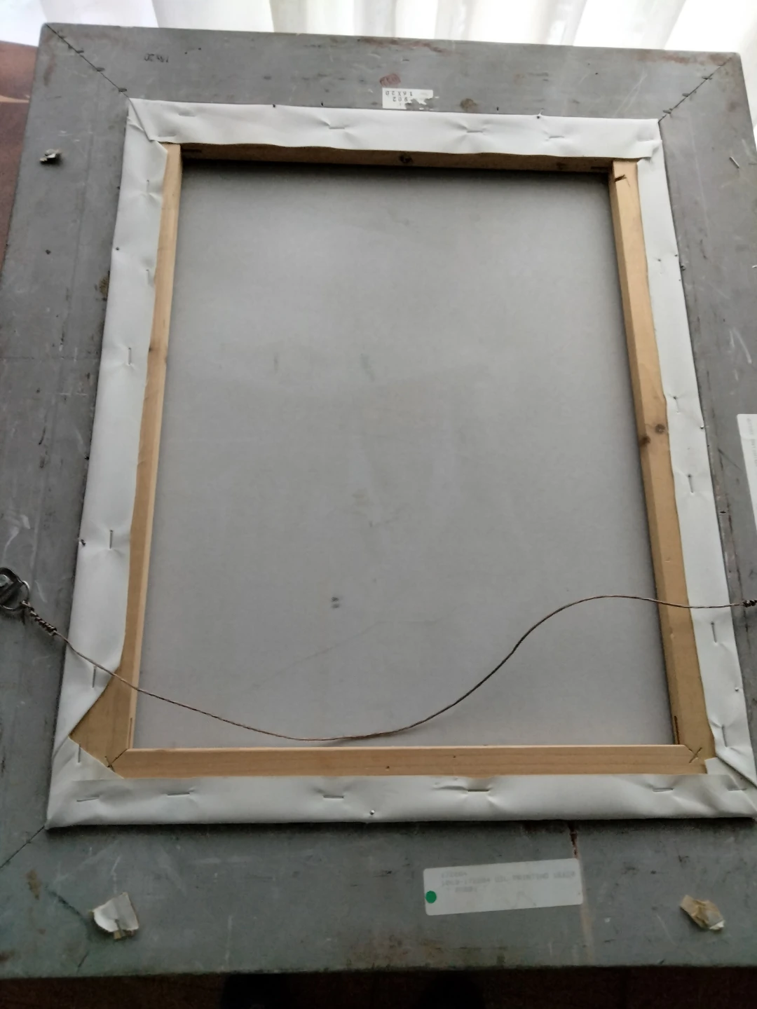 Composition: The painting is housed in an ornate gold frame. The scene is set indoors, likely a home, with a window showing a blue sky in the background.