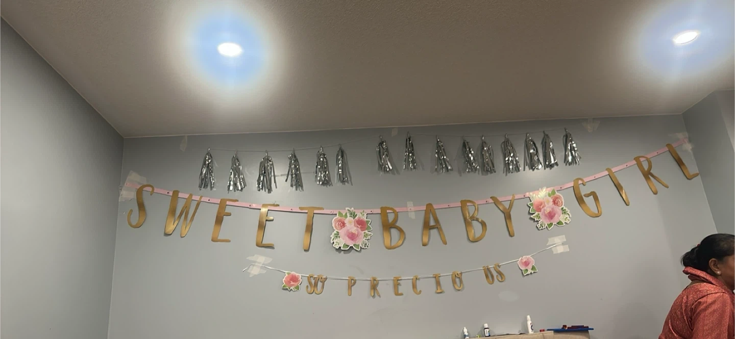 Celebrate your little one with this "Sweet Baby Girl" banner. It features gold lettering and decorative floral accents. Includes a "So Precious" banner to complete the festive look. Perfect for baby showers and nursery decorations!