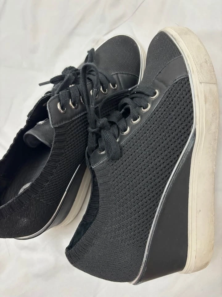 Buy & SellBlack Wedge Sneakers Women's Size 10MBlack Wedge Sneakers Women's Size 10M$30Comfy black wedge sneakers. Has a knit/mesh upper with lace-up closure and white soles. Women's size 10M.WHERE TO MEETCheck LocationView MapSELLERverifiedGhiselleNewmarket Clearmeadow650 reviews0 chats·0 favorites·1 viewsSEND CHAT TO SELLERHi Ghiselle! I’m interested in your listing.Hi Ghiselle! I’m interested in your listing.Get the Karrot app to chatSign In to chat